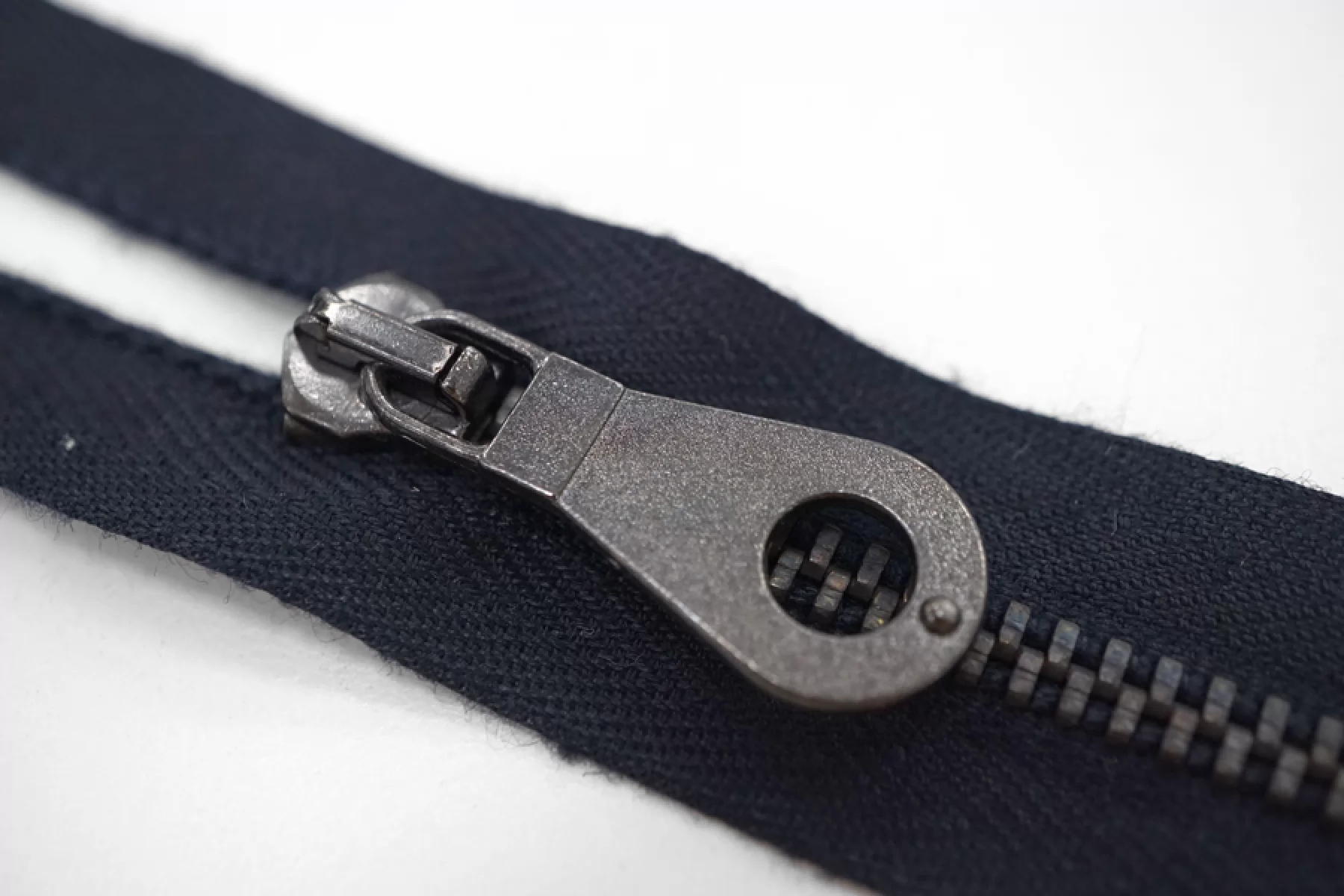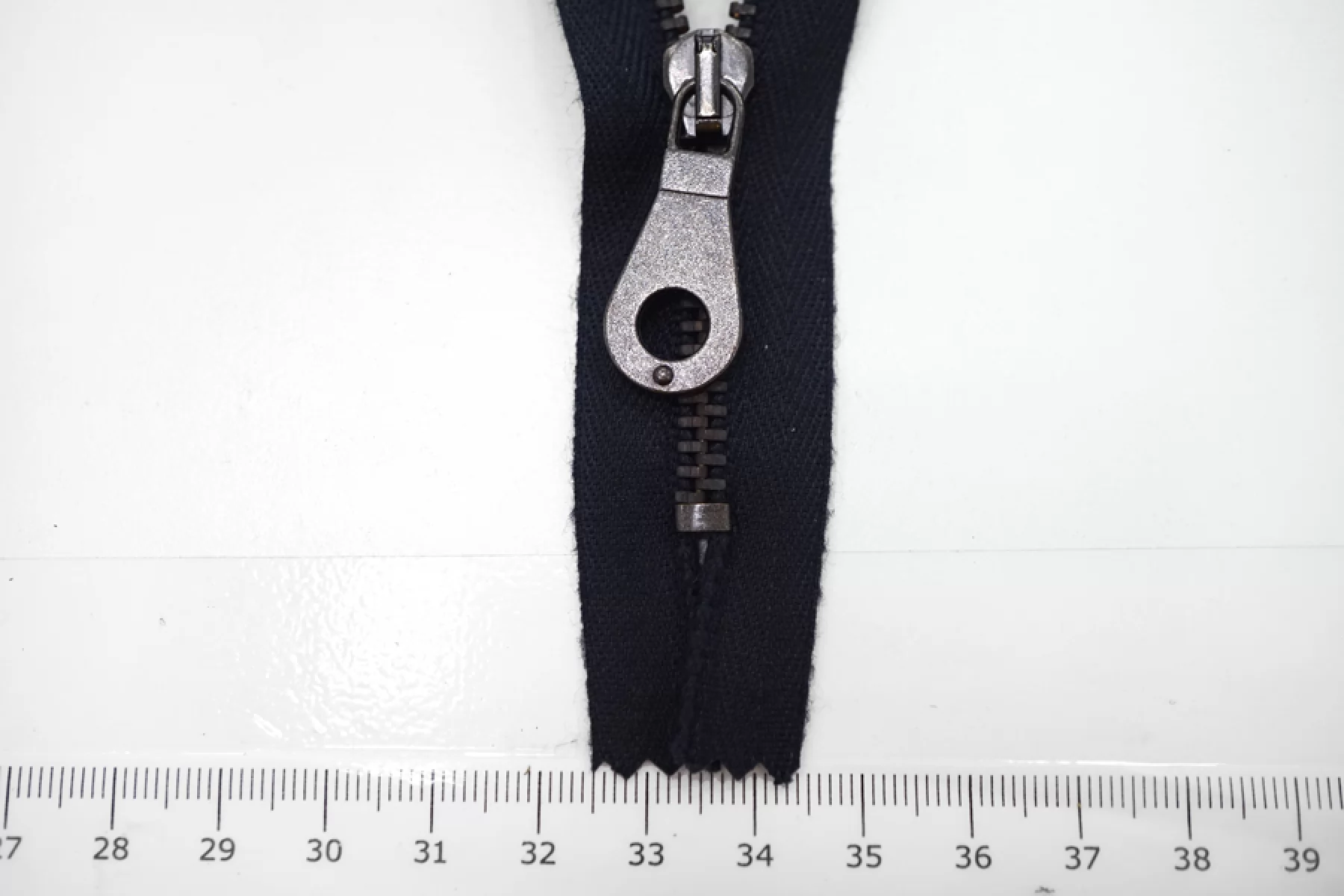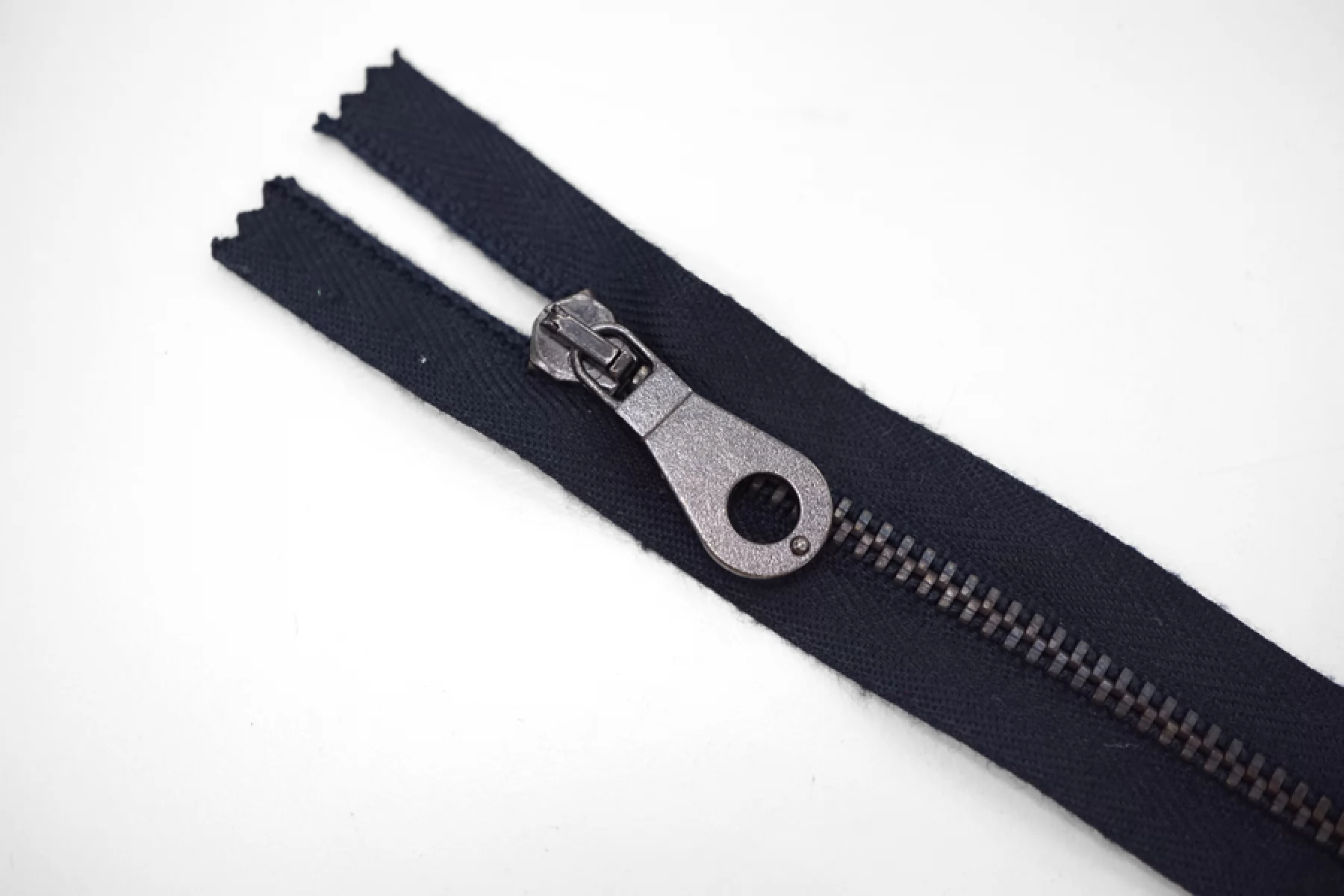 Молния металлическая однозамковая от "Lampо" неразъёмная, тёмно-синего цвета, цвет зубцов и пуллера - никель. Длина 20 см.