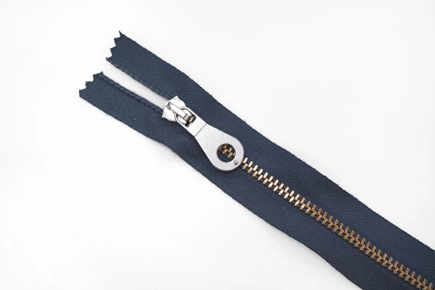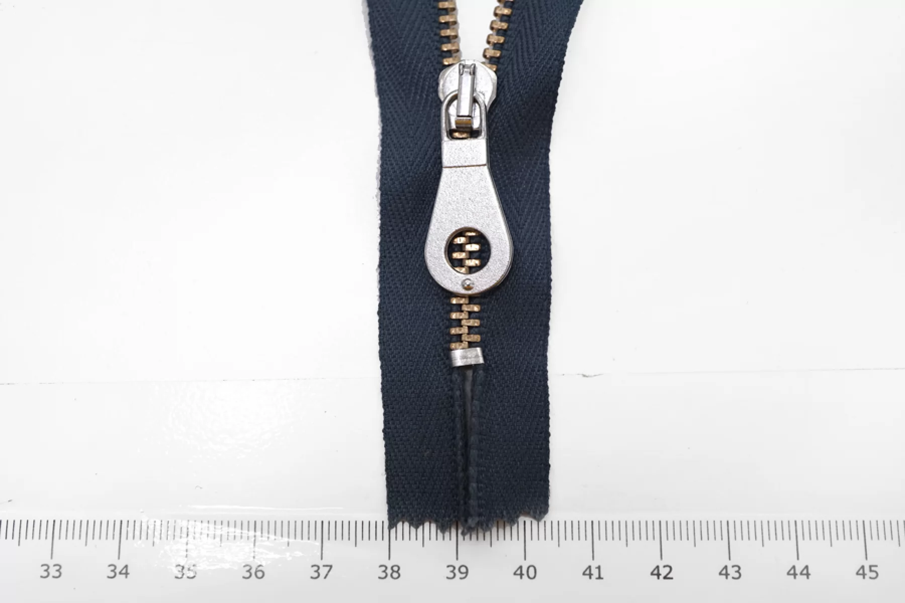 Молния металлическая однозамковая от "Lampо" неразъёмная, тёмно-синего цвета, цвет зубцов золотистый , цвет пуллер серебристый . Длина 26 см.