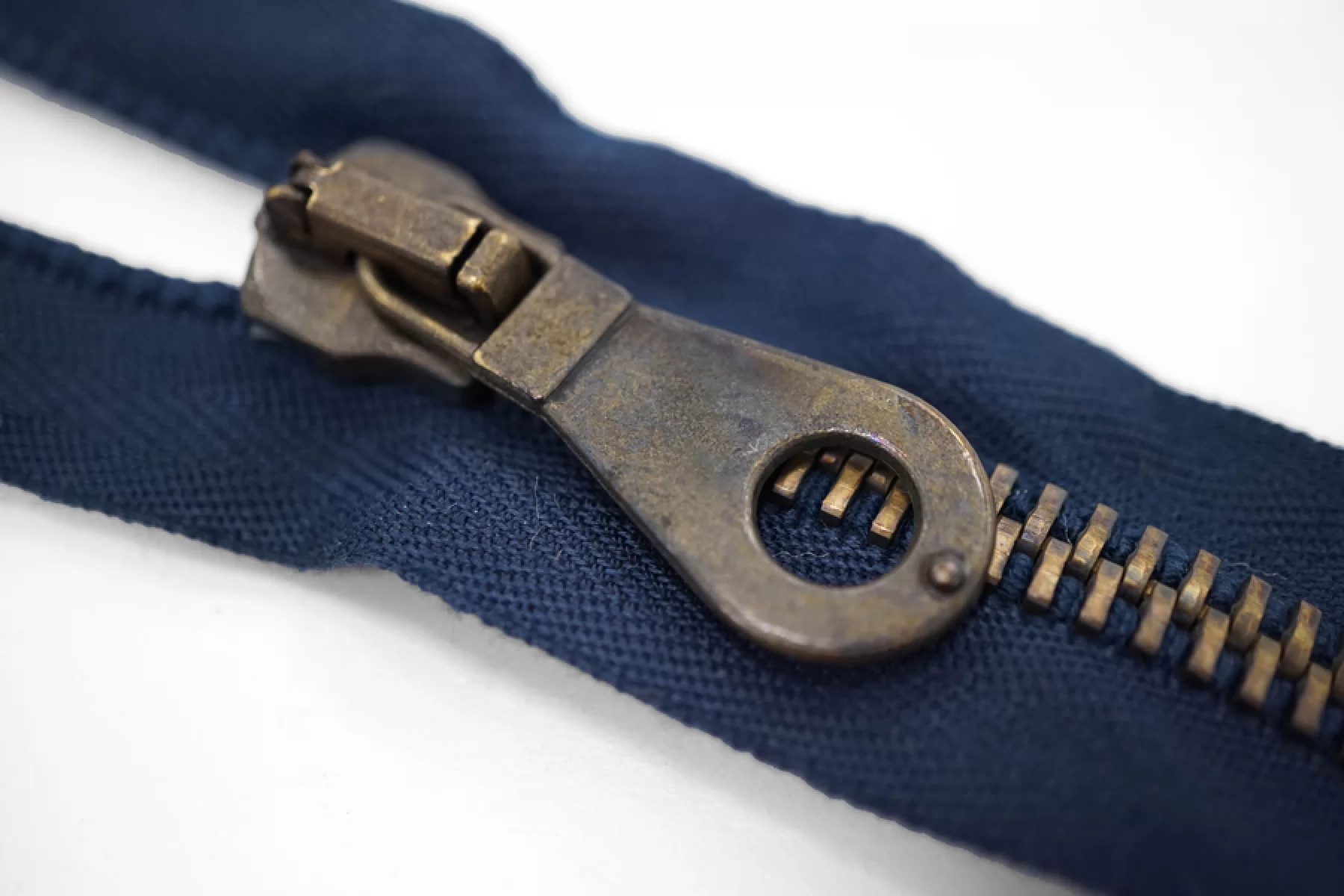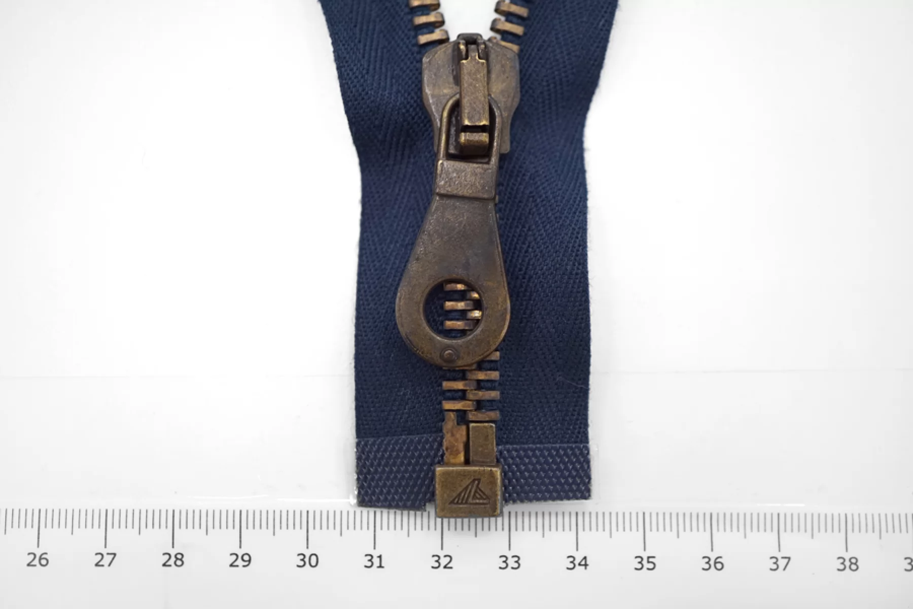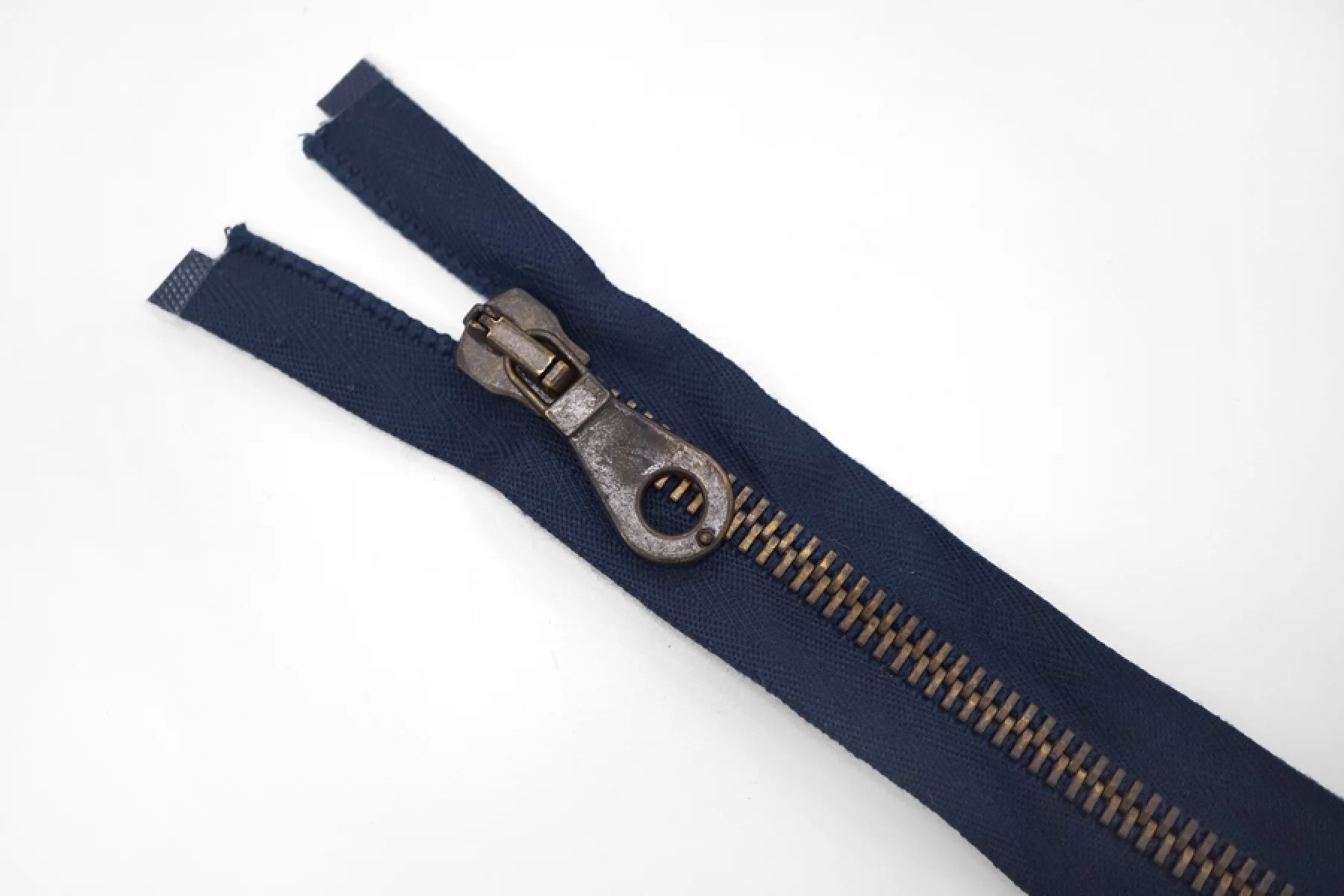 Молния металлическая однозамковая от "Lampо" разъёмная, тёмно-синего цвета, цвет зубцов и пуллера - бронзовый. Длина 38 см.