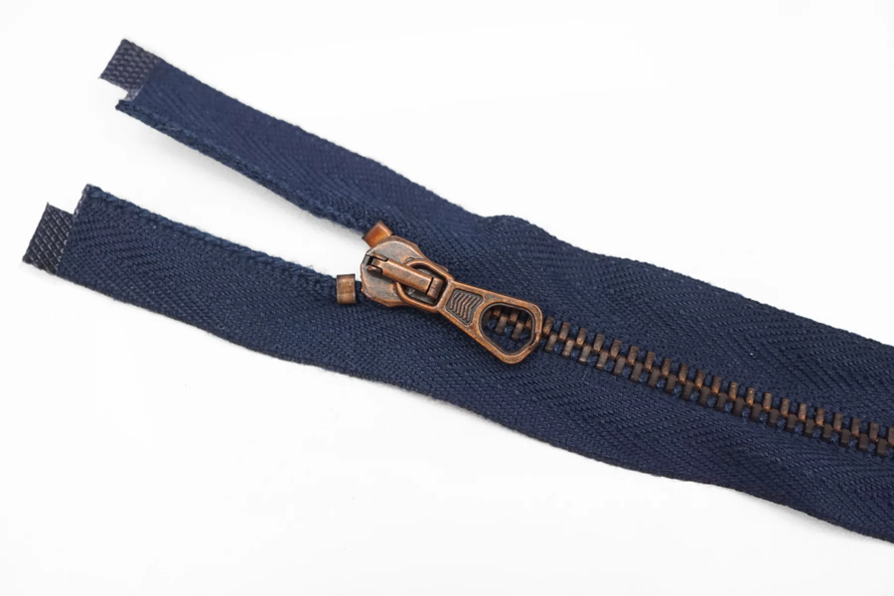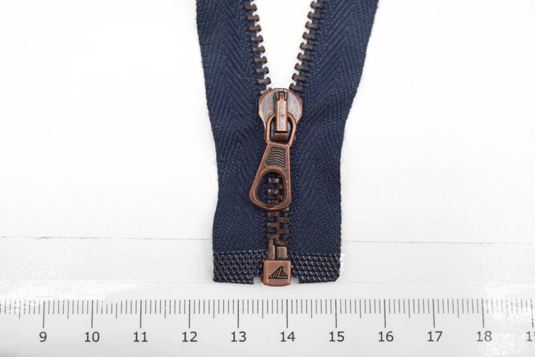 Молния металлическая от "Lampo" разъемная, тёмно-синего цвета, цвет слайдера , пуллера и цвет зубцов бронзовый. Длина 42 см. Внимание, все металлически элементы могут пачкаться.