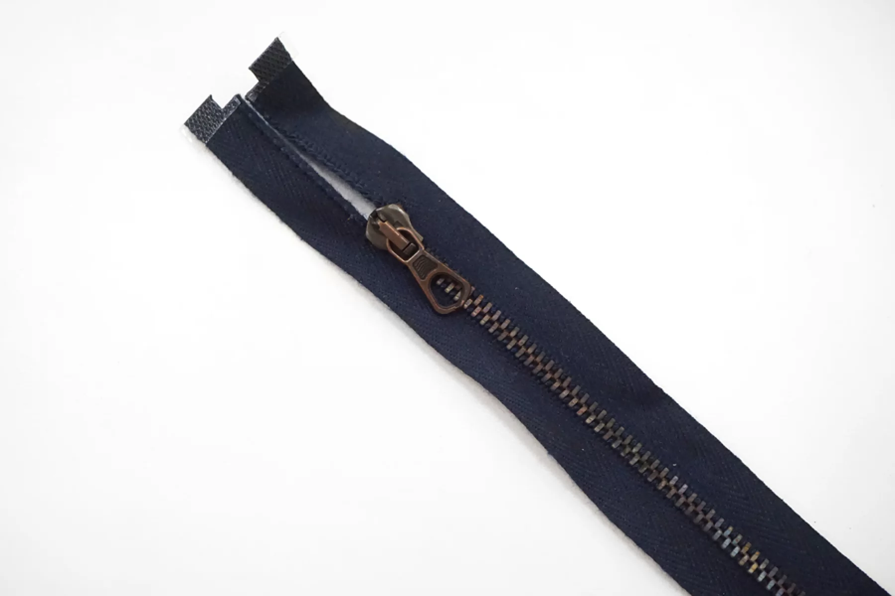 Молния металлическая от "Lampo" разъемная, тёмно-синего цвета, цвет слайдера , пуллера и цвет зубцов бронзовый. Длина 53 см. Внимание, все металлически элементы могут пачкаться.