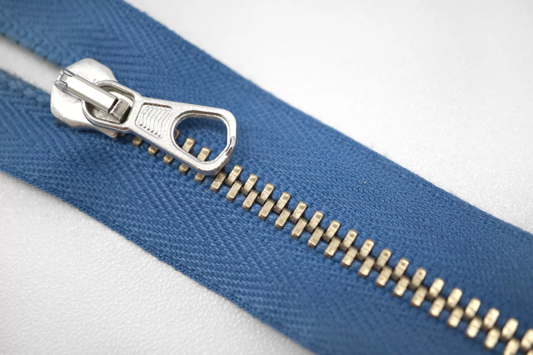 Молния от "Lampo" неразъемная, васильковая, цвет зубцов золотистый, слайдер и пуллер серебристый. Длина 12 см.