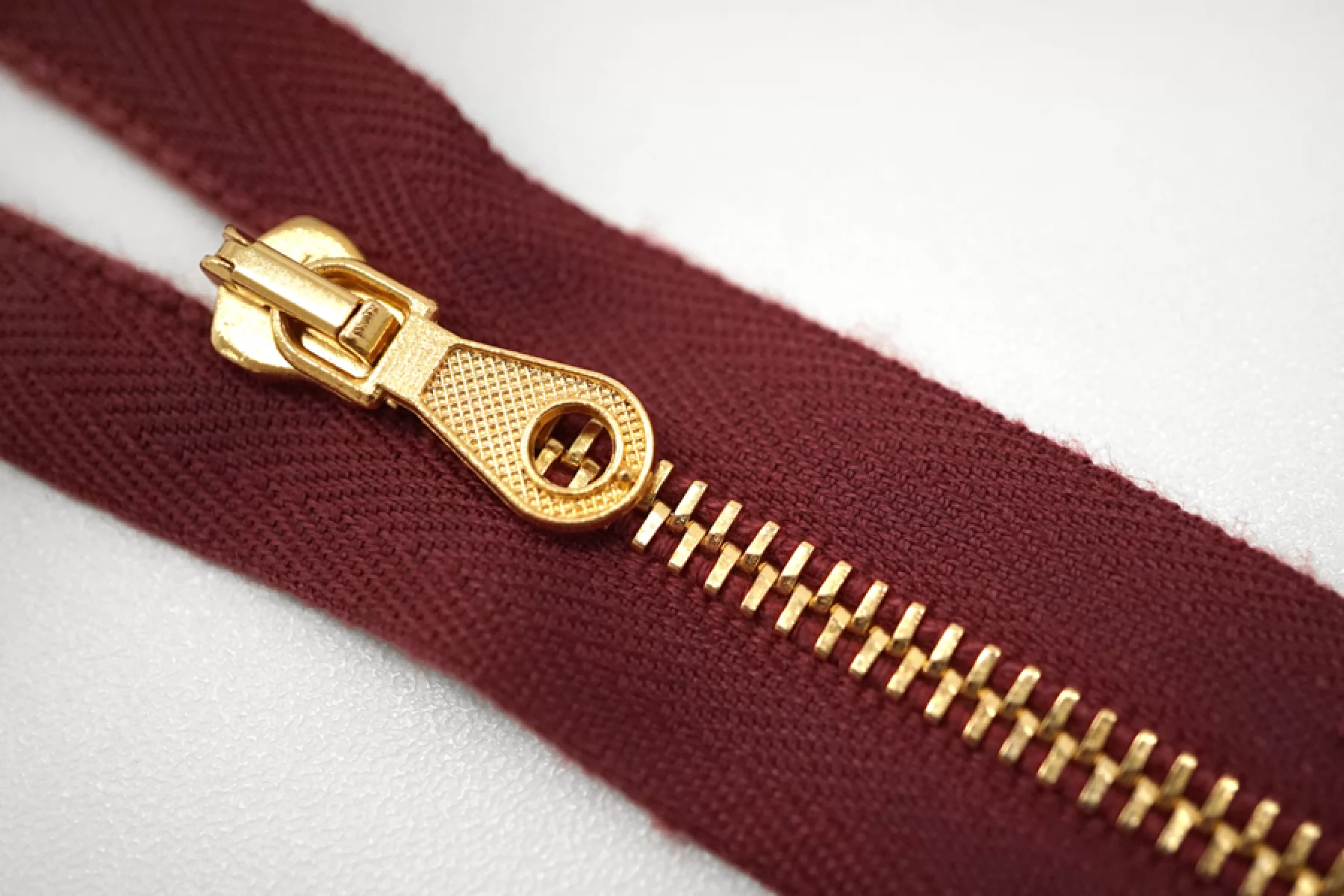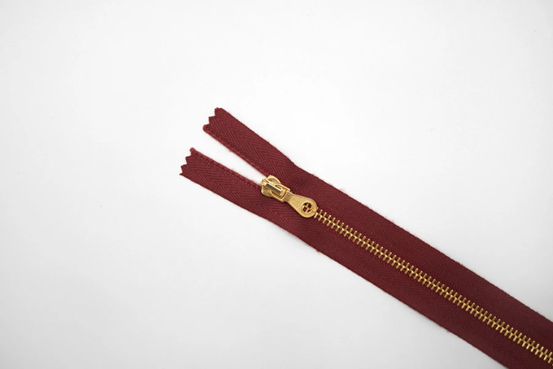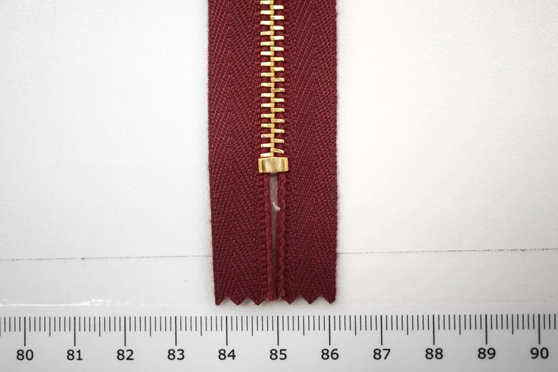 Молния металлическая от "Lampo" неразъемная, винная, цвет зубцов желтое золото. Длина 22 см.
