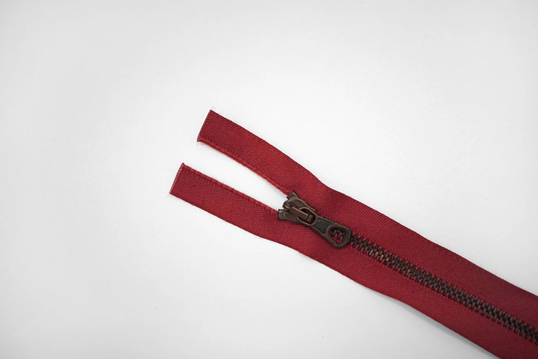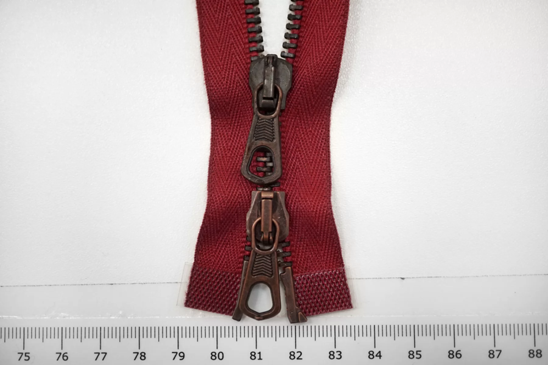 Молния от "Lampo" разъемная, двухзамковая, цвета вишни, цвет зубцов бронза. Длина 40 см.