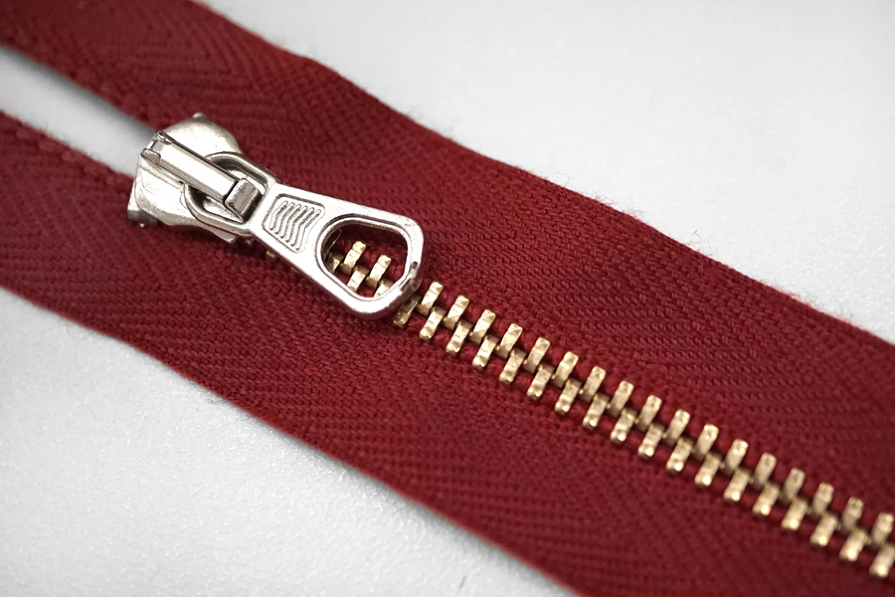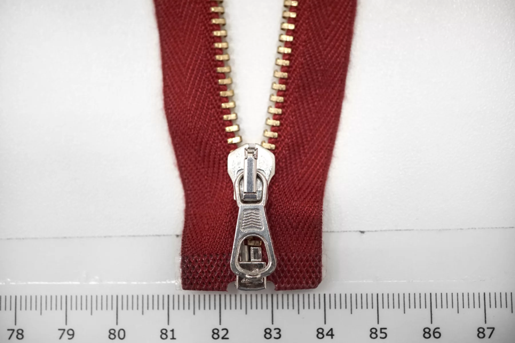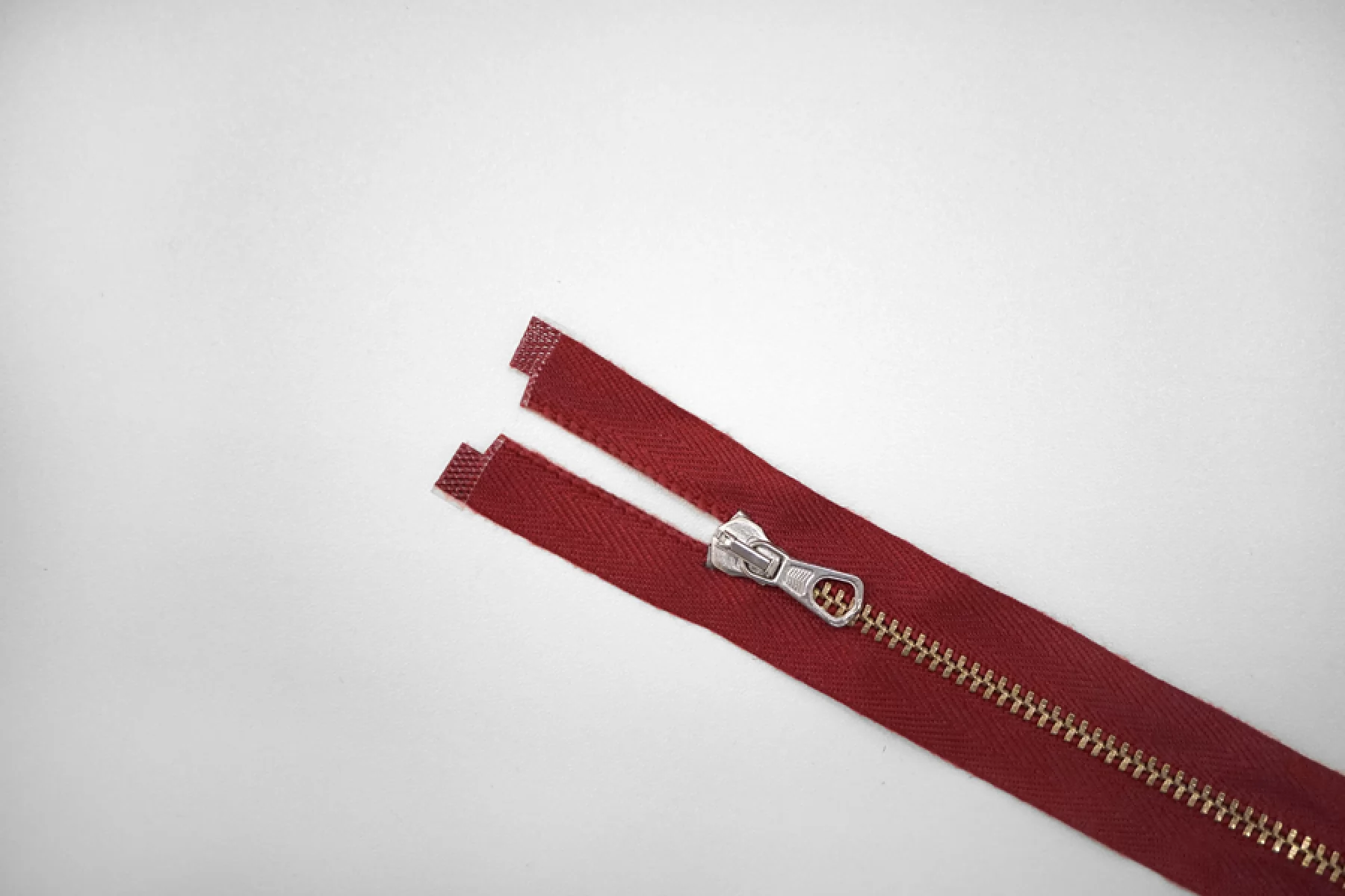 Молния от "Lampo" разъемная, однозамковая, ягодного цвета, цвет зубцов золотистый, пуллера и слайдера серебристый. Длина 34 см.