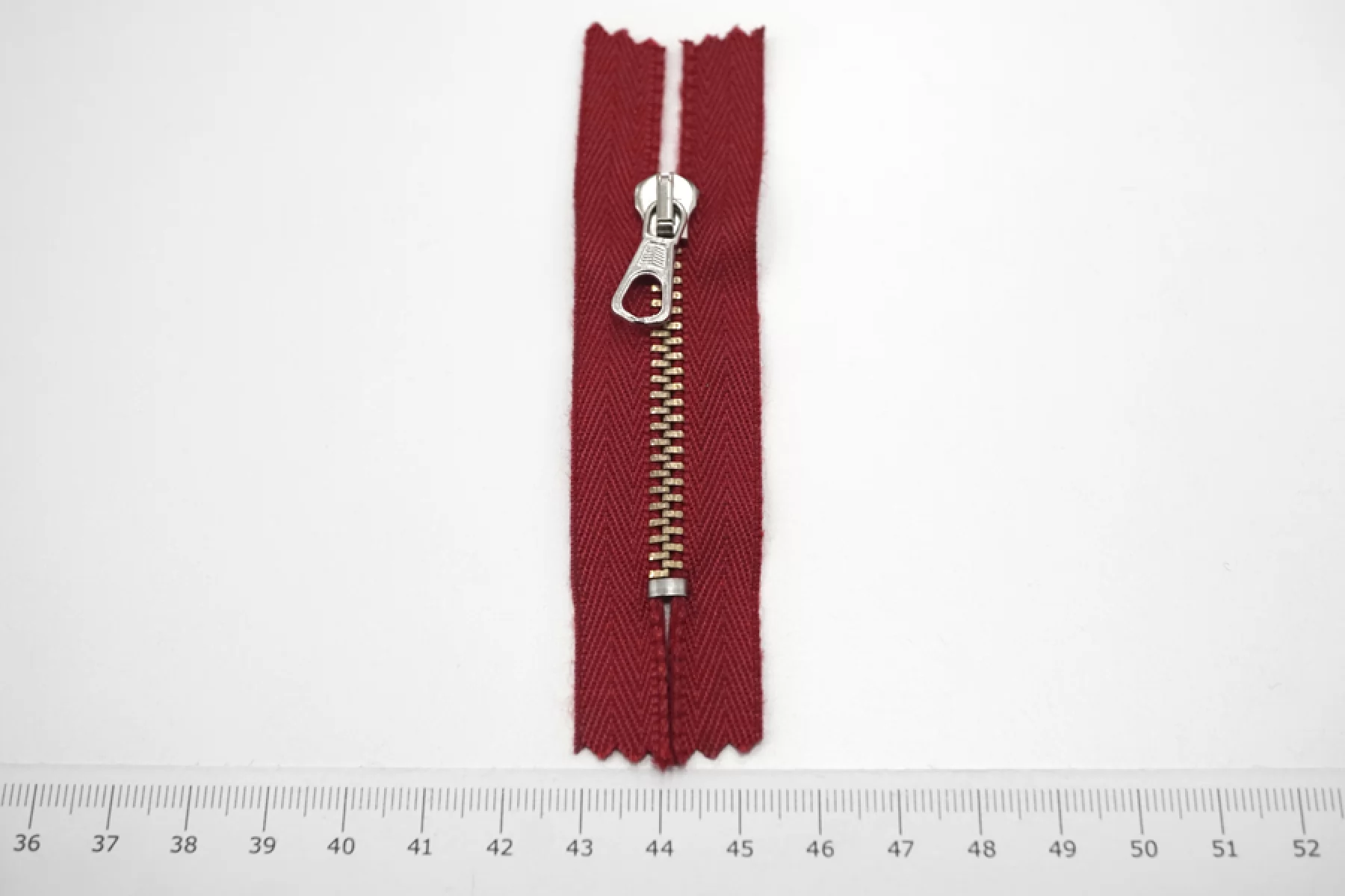 Молния от "Lampo" неразъемная, ягодная, цвет зубцов - золотистый, слайдер и пулер - серебристые. Длина 6 см.