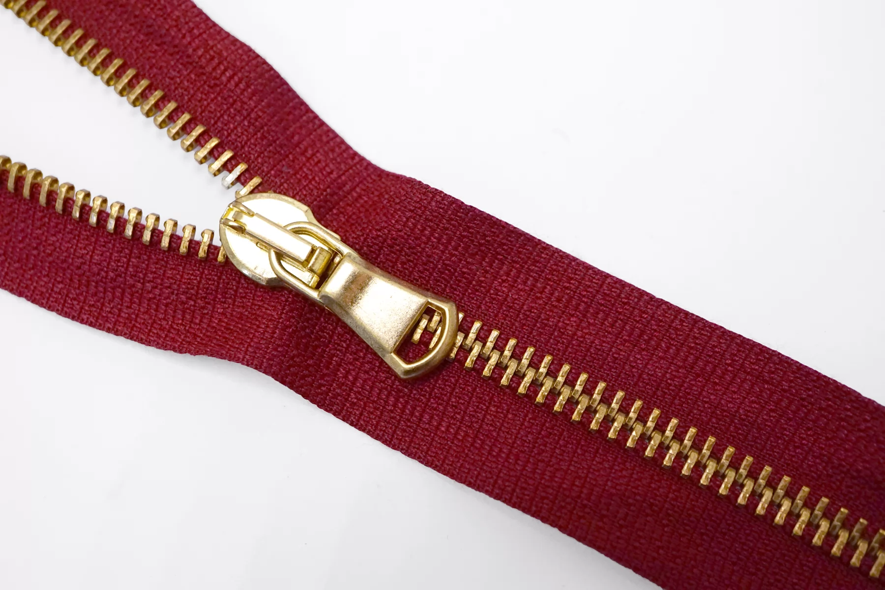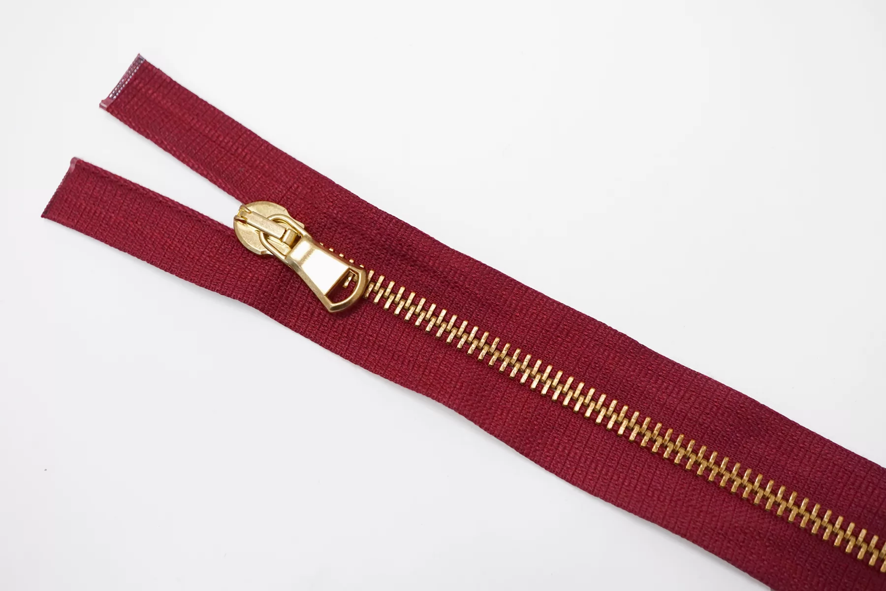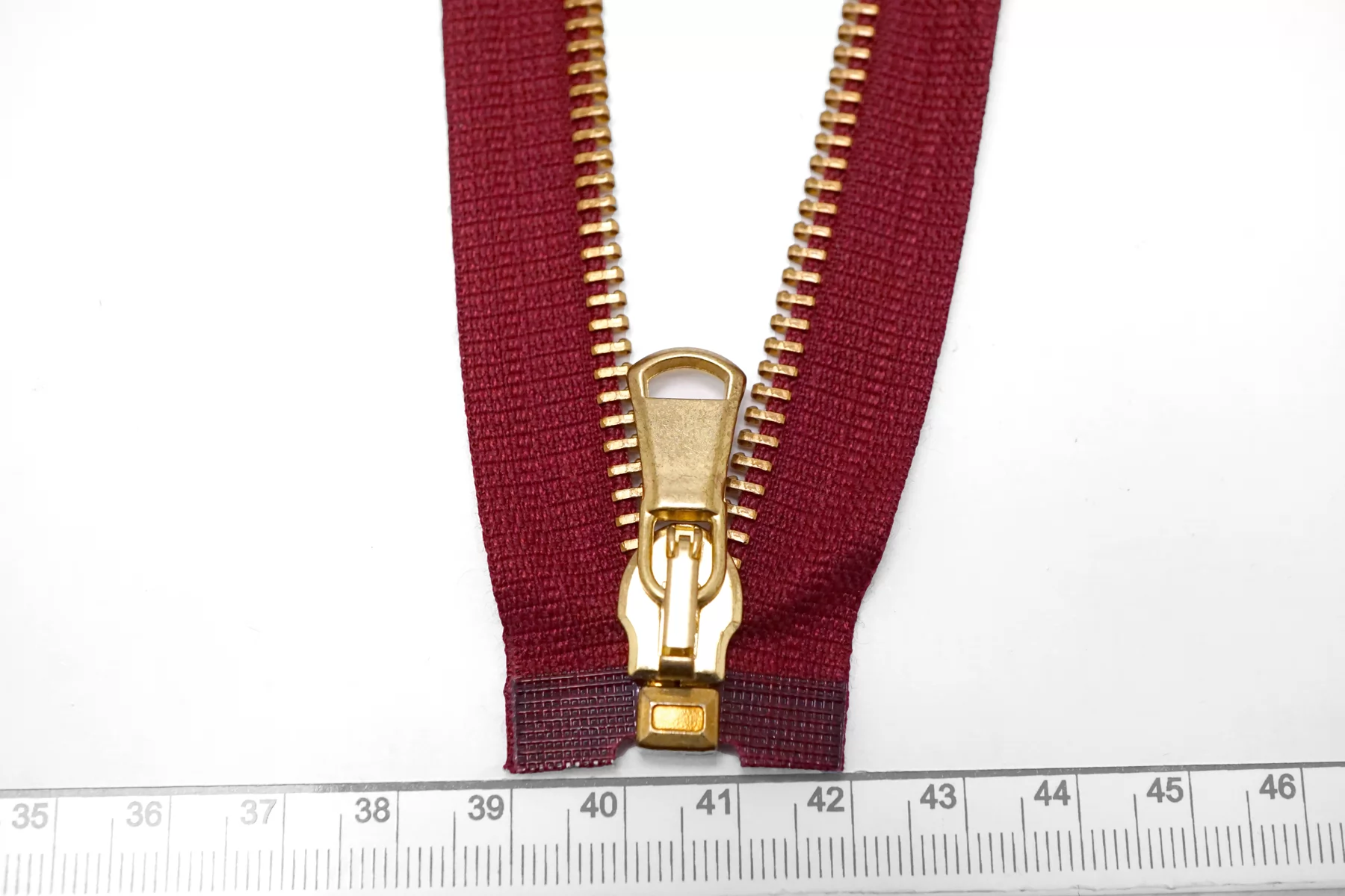 Молния от компании MeRaS (входит в RiRi) разъемная, бордовая, цвет зубцов и пуллера золотистый. Длина 96 см.