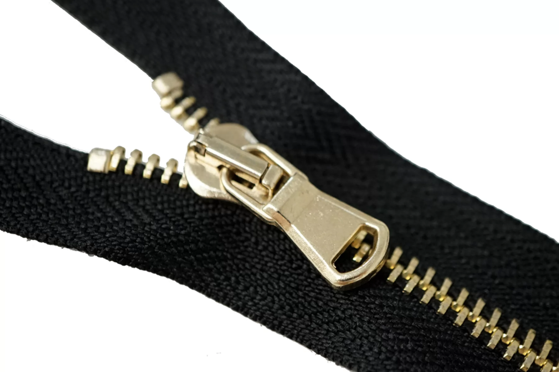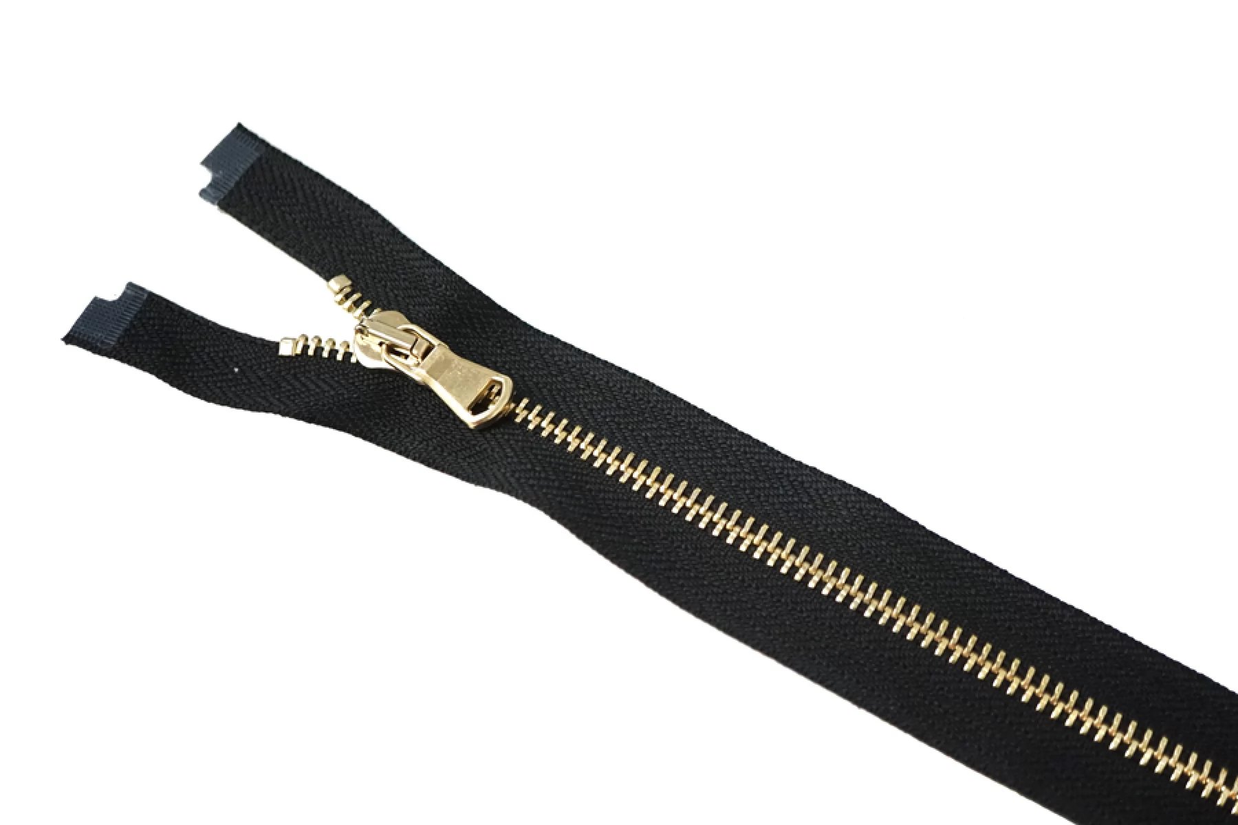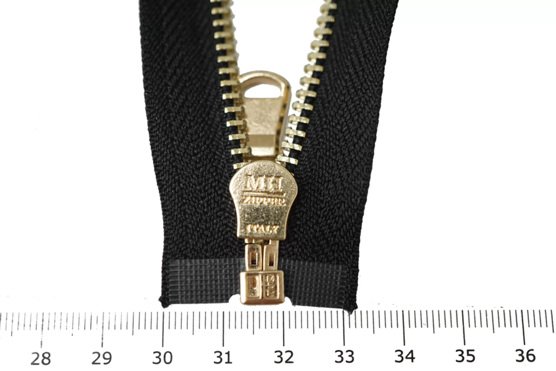 Молния металлическая от MH Zipper ITALY, спиральная, разъемная, один замок. Цвет молнии черный, цвет зубцов, пуллера и слайдера золото. Длина 45см. Ширина молнии 3см, ширина зубцов 6мм.