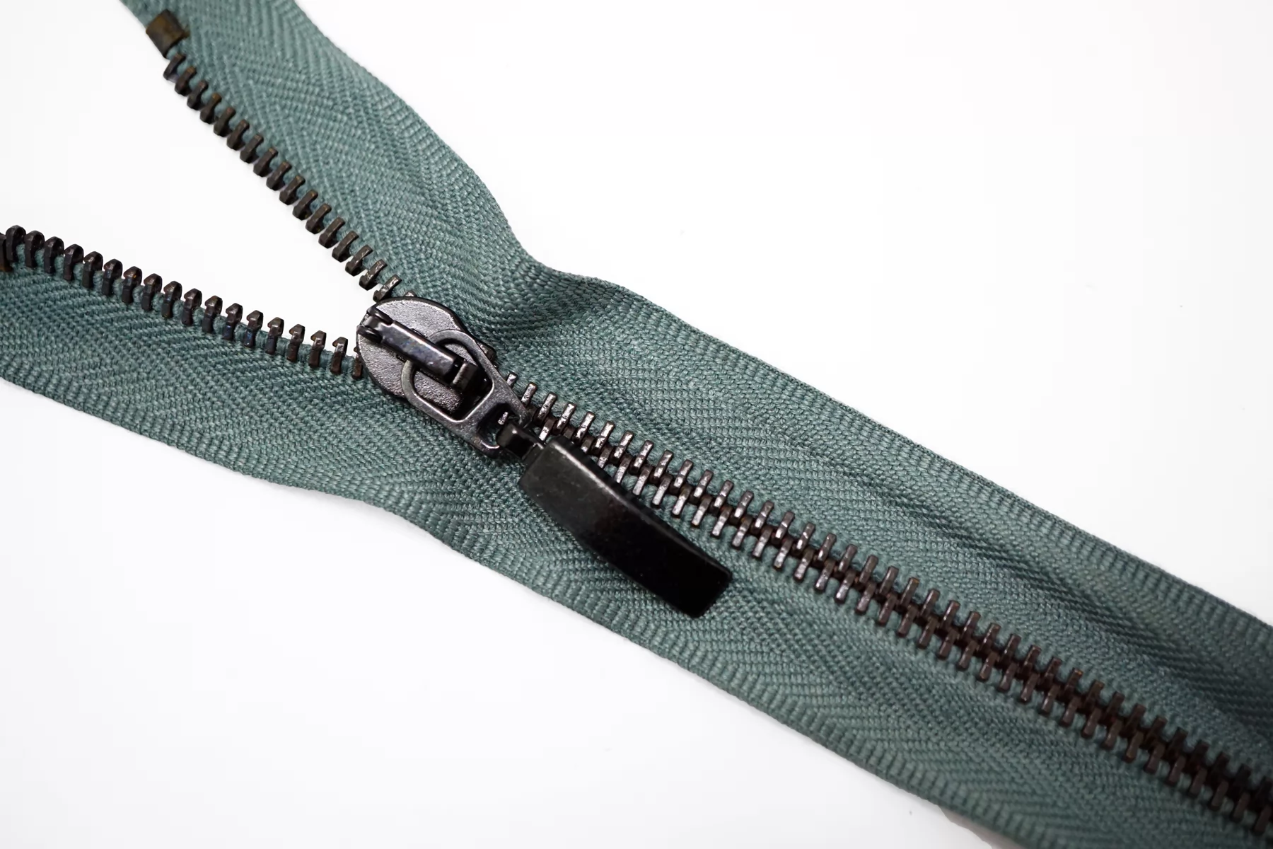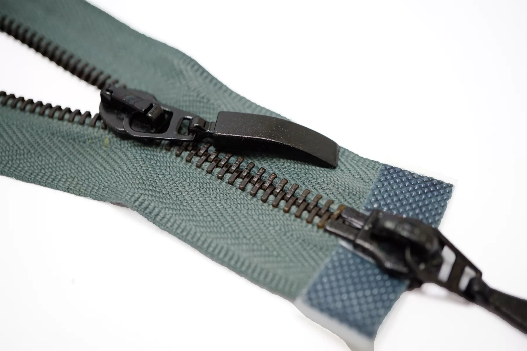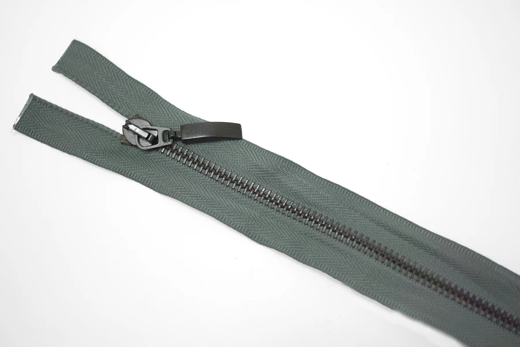 !Внимания, звенья немного пачкаются при трении, плюс на нижнем слайдере немного облуплена краска (видно на фото)! Молния металлическая MRS двухзамковая, разъёмная, оттенок зелёного шалфея, цвет зубцов чёрный никель, пуллеров-чёрный. Длина 69 см.