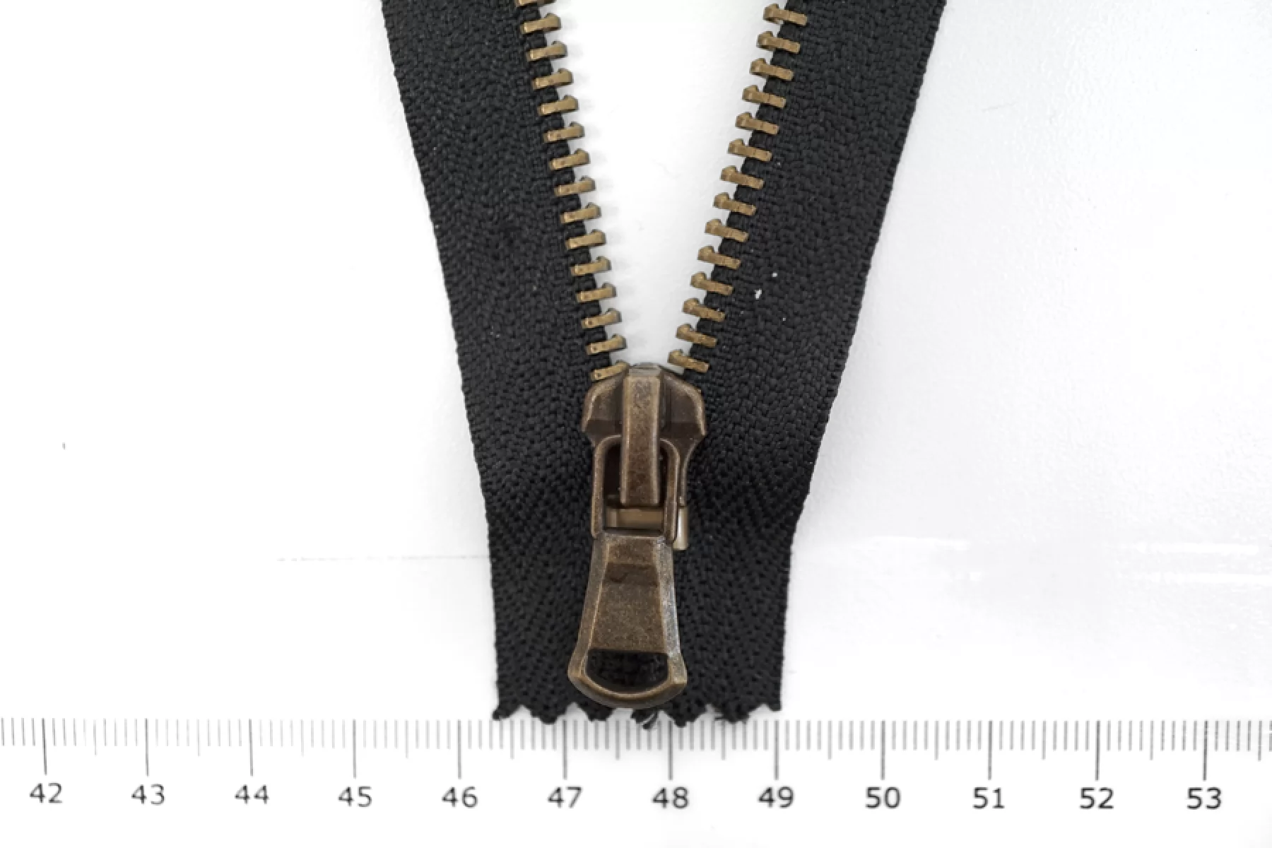 Итальянская молния неразъёмная YKK, однозамковая, черного оттенка. Материал зубцов, слайдера и пулера - металл, оттенки - античная бронза. Длина 14 см. Ширина молнии 2,9 см. Ширина зубцов 6 мм.