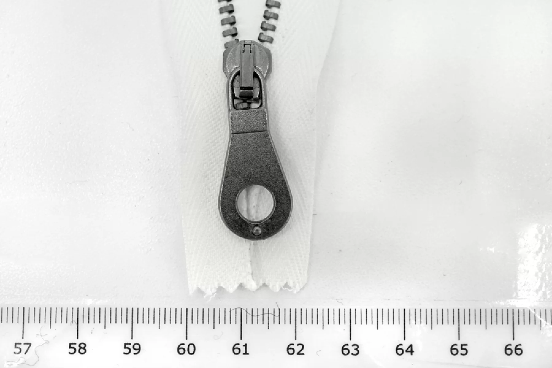 Итальянская молния неразъёмная, однозамковая, молочно-белого оттенка. Материал зубцов, слайдера и пулера - металл, оттенки - темный никель. Длина 20 см. Ширина молнии 2,5 см. Ширина зубцов 5 мм.