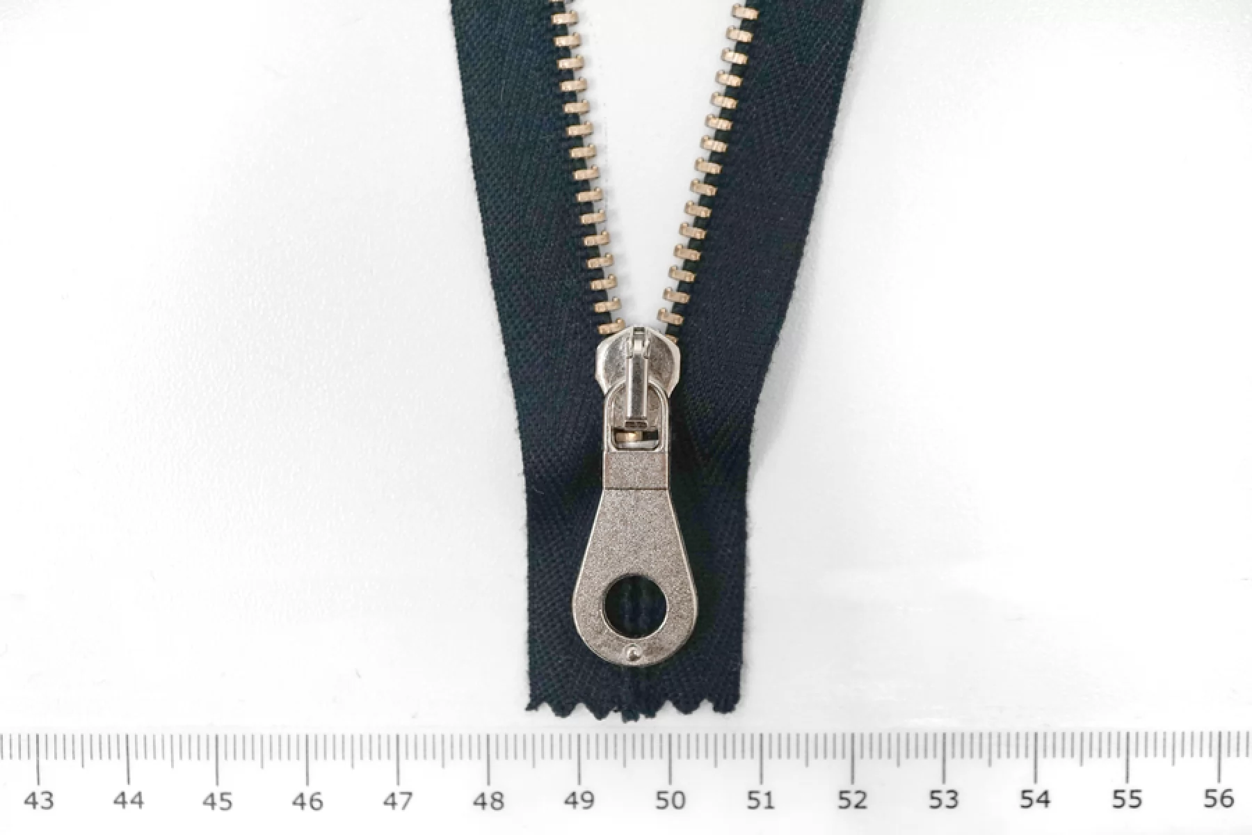 Итальянская молния неразъёмная, однозамковая, глубокого темно-синего оттенка. Материал зубцов, слайдера и пулера - металл, оттенки - латунь и серебро. Длина 28 см. Ширина молнии 2,5 см. Ширина зубцов 5 мм.