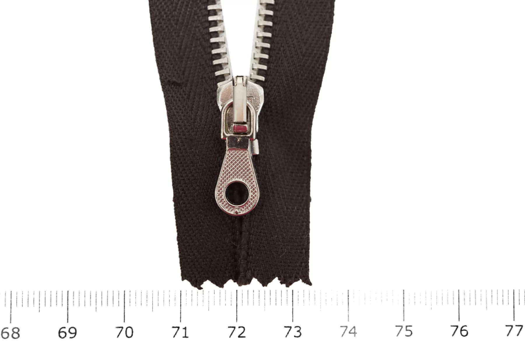 Молния от Итальянского производителя "Lampo" неразъемная, однозамковая, цвет - горький шоколад, цвет зубцов серебряный, цвет пуллера и слайдера также серебряные. Длина 18 см. Ширина молнии 2,5 см, ширина зубцов 5 мм.