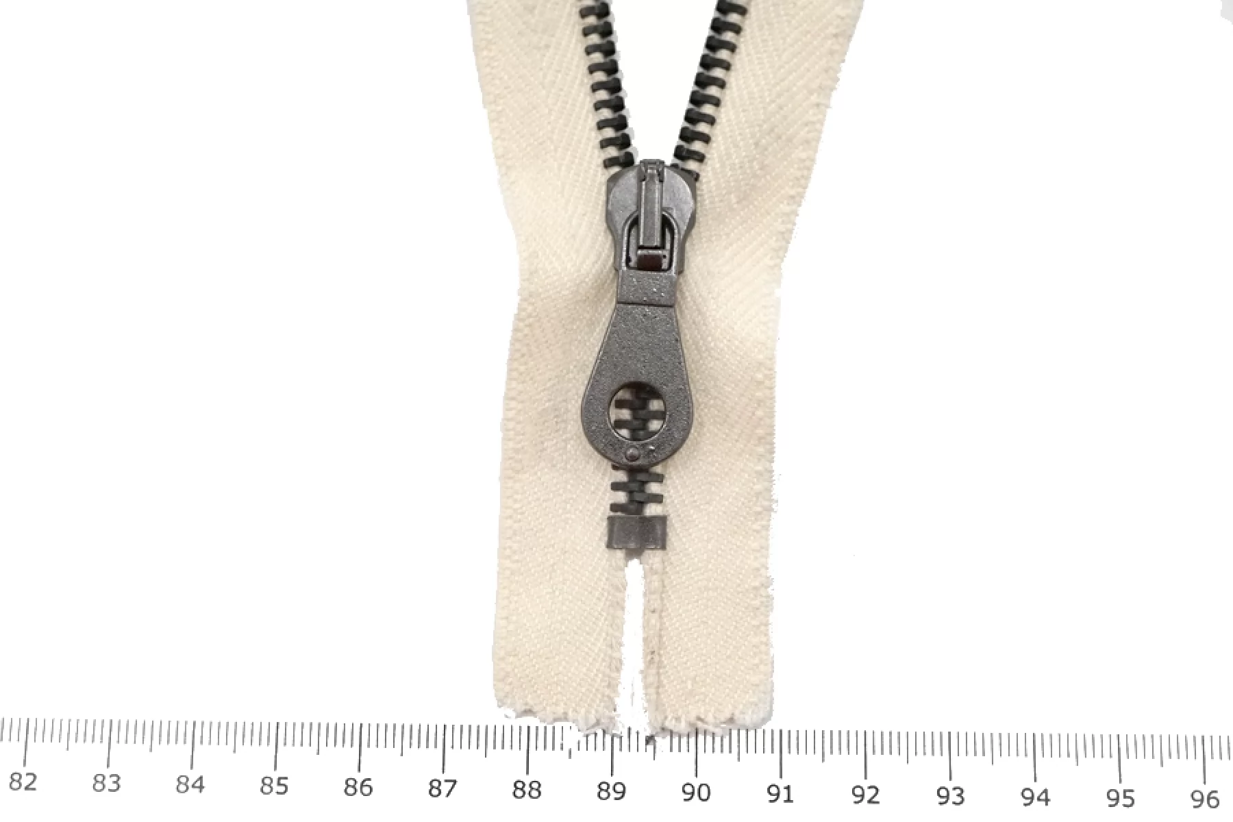 Молния от "Lampo" неразъемная, молочная, цвет зубцов - металл под темный никель. Длина 20см. Ширина молнии 3,1 см. Ширина зубцов 6мм.
