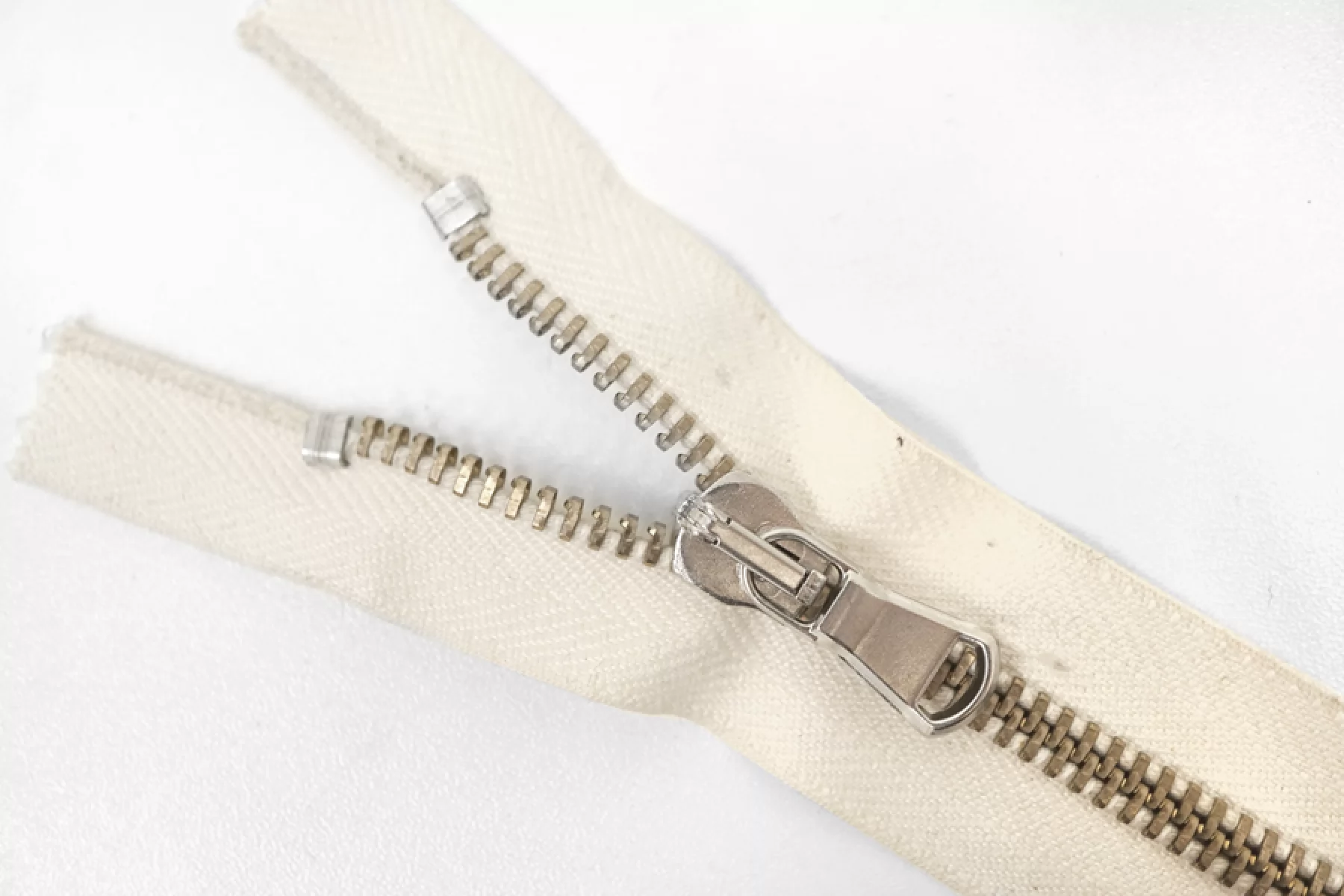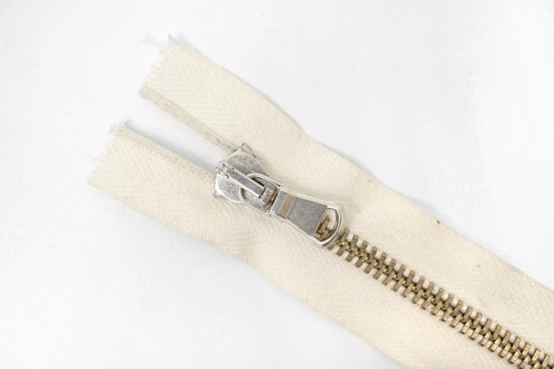 Итальянская молния неразъёмная, однозамковая, молочно-кремового оттенка. Материал зубцов, слайдера и пулера - металл, оттенки - бронза и серебро. Длина 8 см. Ширина молнии 3,2 см. Ширина зубцов 6 мм.
