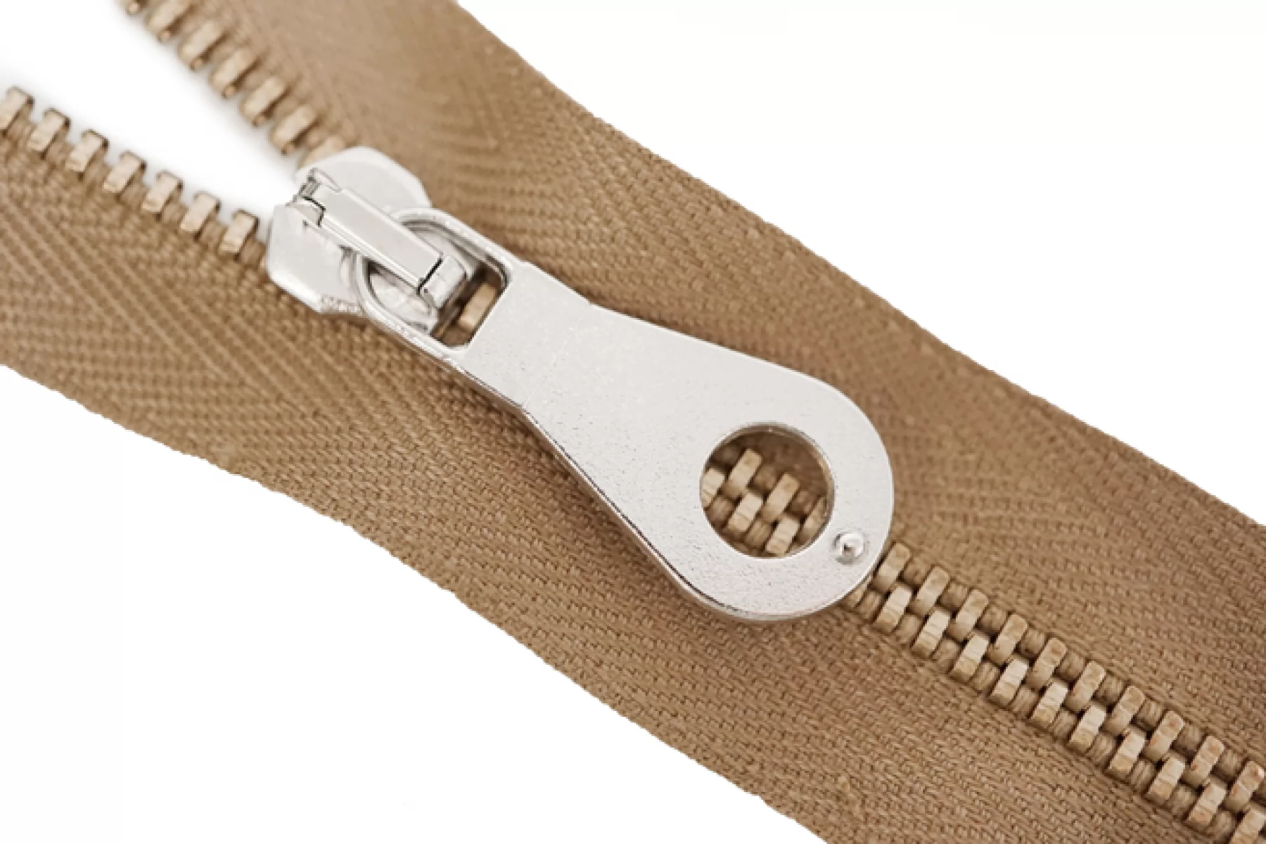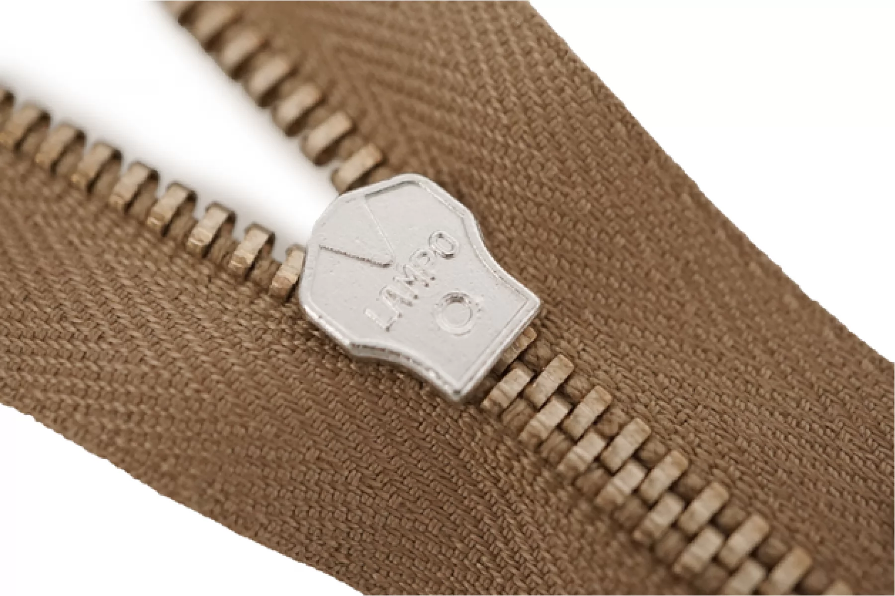 Молния от Итальянского производителя "Lampo" неразъемная, однозамковая, оттенка молочного шоколада, цвет зубцов латунь, цвет пуллера и слайдера серебряные. Длина 26 см. Ширина молнии 2,6 см, ширина зубцов 4 мм.