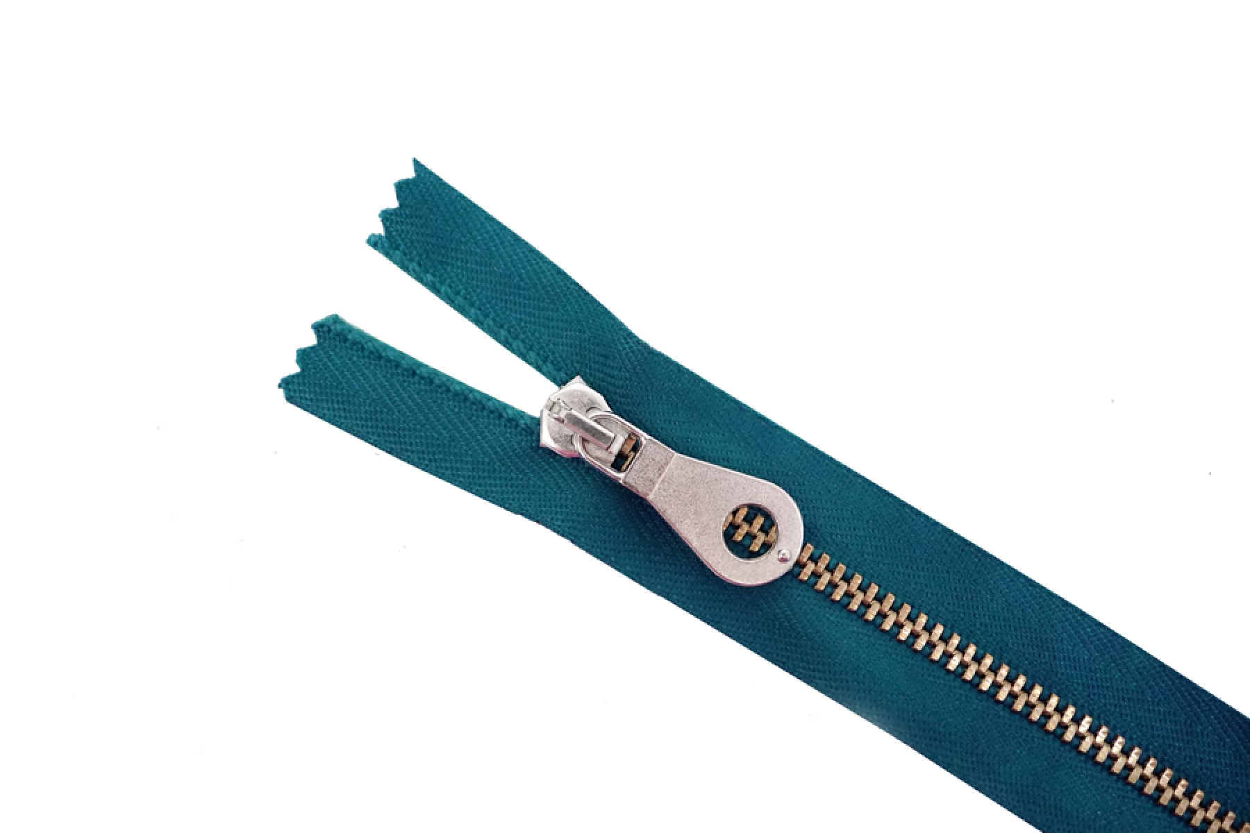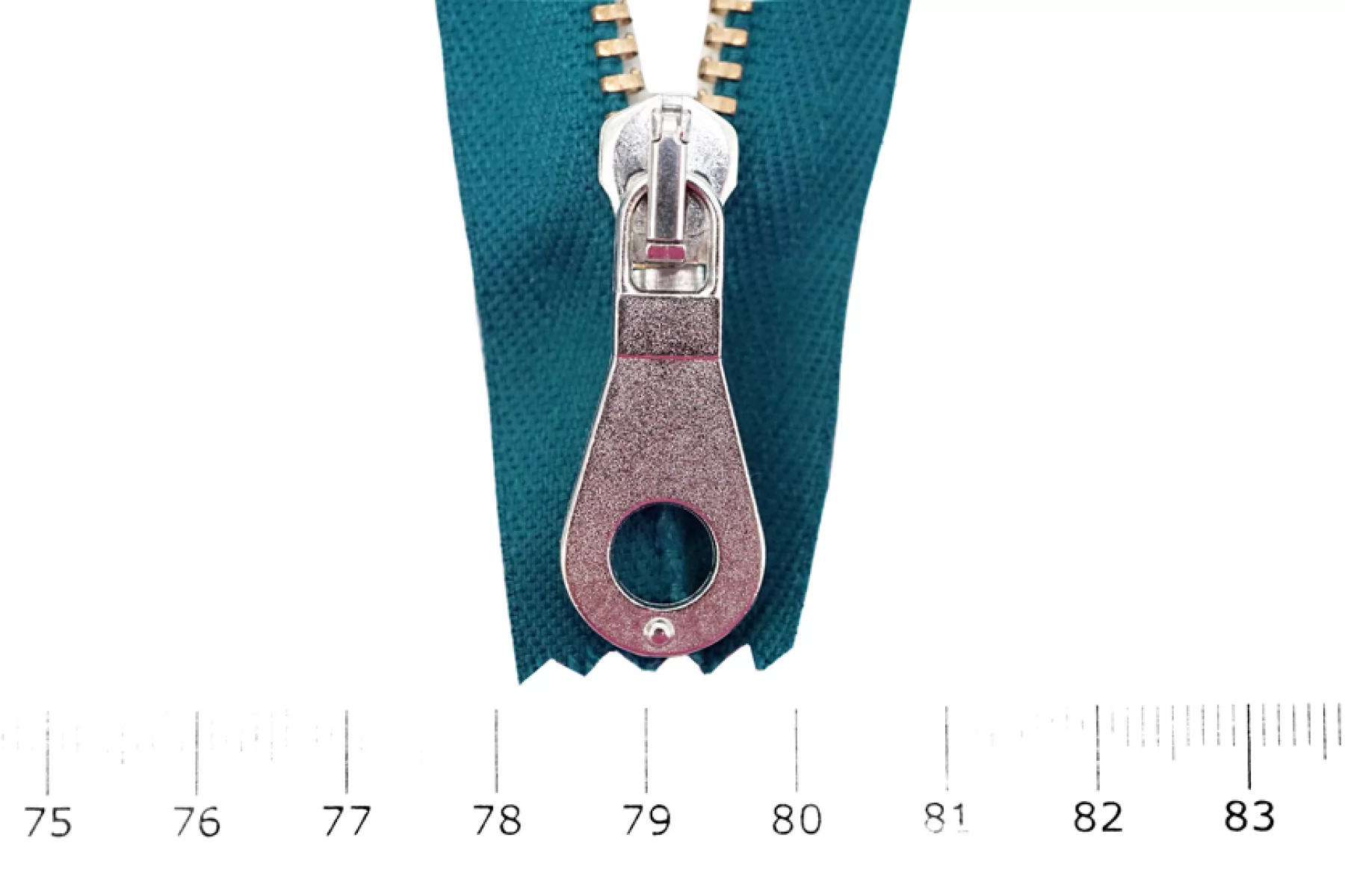 Молния от Итальянского производителя "Lampo" неразъемная, однозамковая, цвет - петроль, цвет зубцов золотой, цвет пуллера и слайдера серебряные. Длина 26 см. Ширина молнии 2,5 см, ширина зубцов 5 мм.