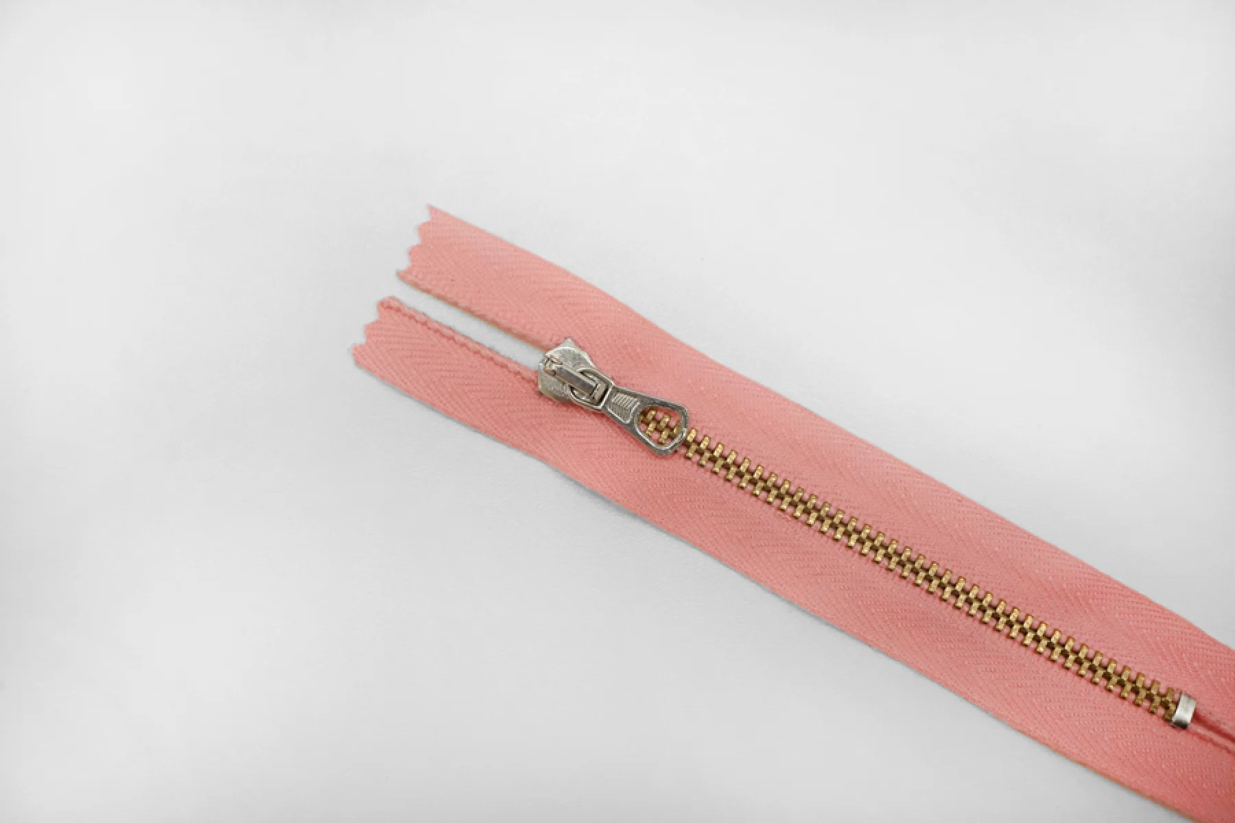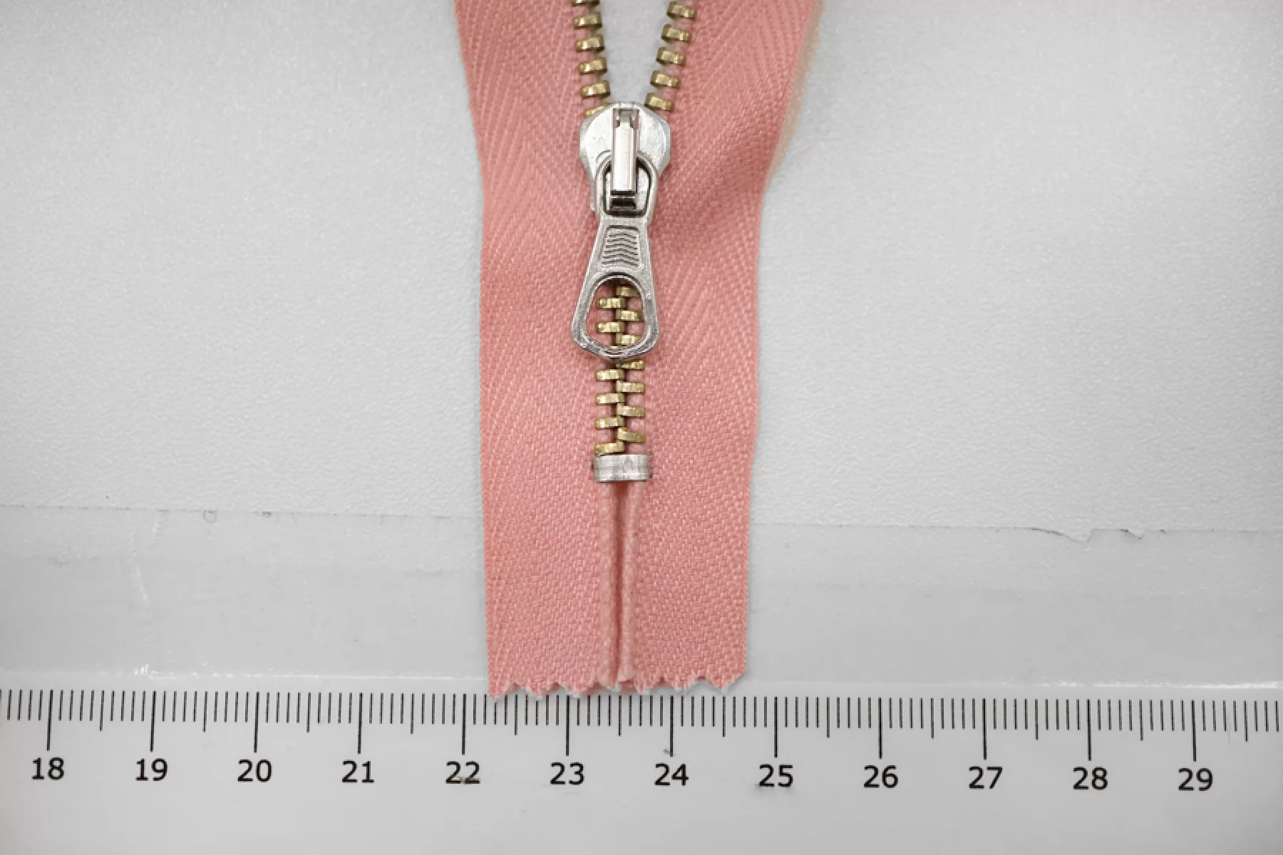 Молния металлическая от "Lampo" неразъемная, розового цвета, цвет пуллера и слайдера серебристый. Длина 11 см.