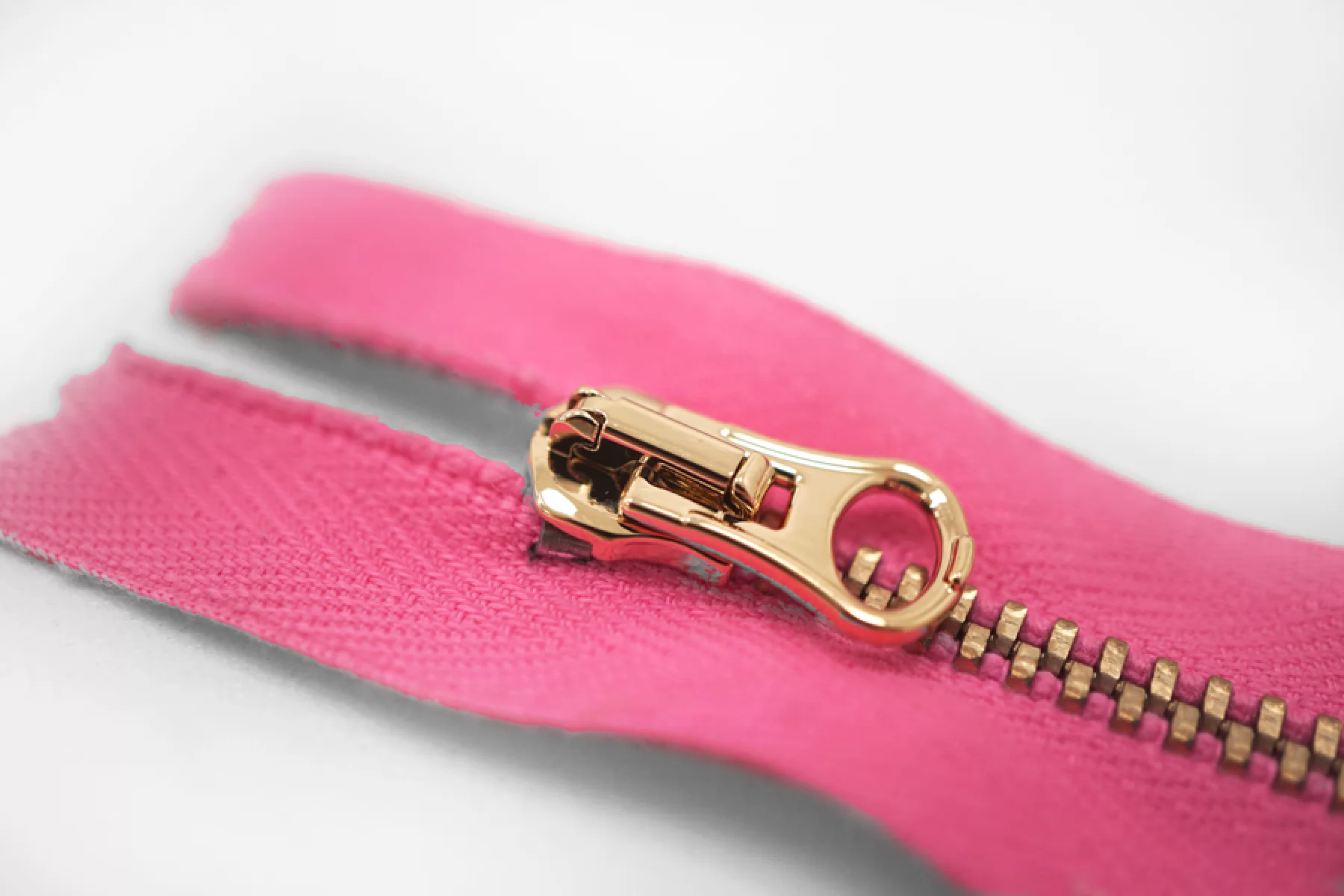 Молния от "Lampo" неразъемная, розовая, цвет зубцов золотистый. Длина 21,5 см.