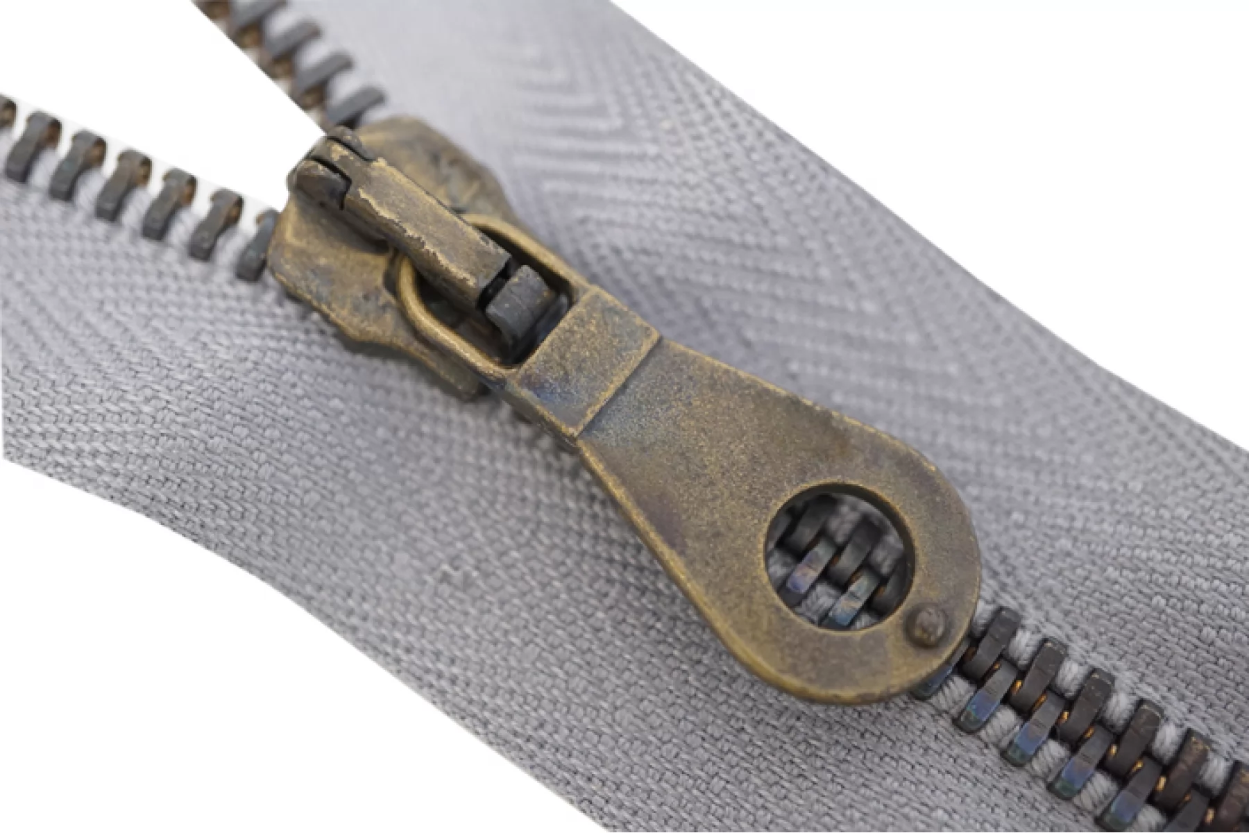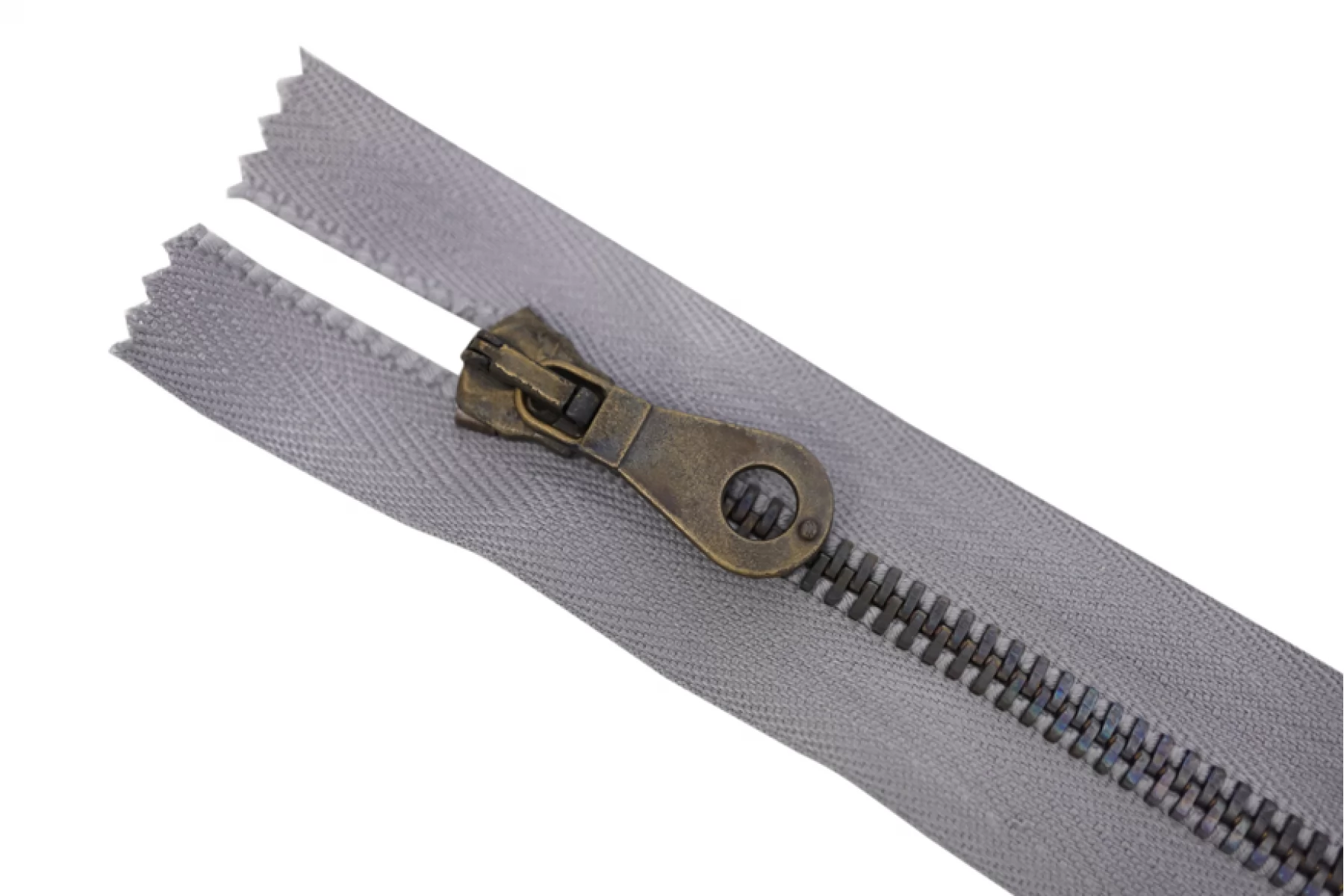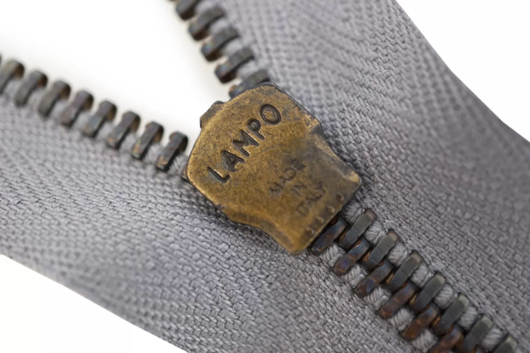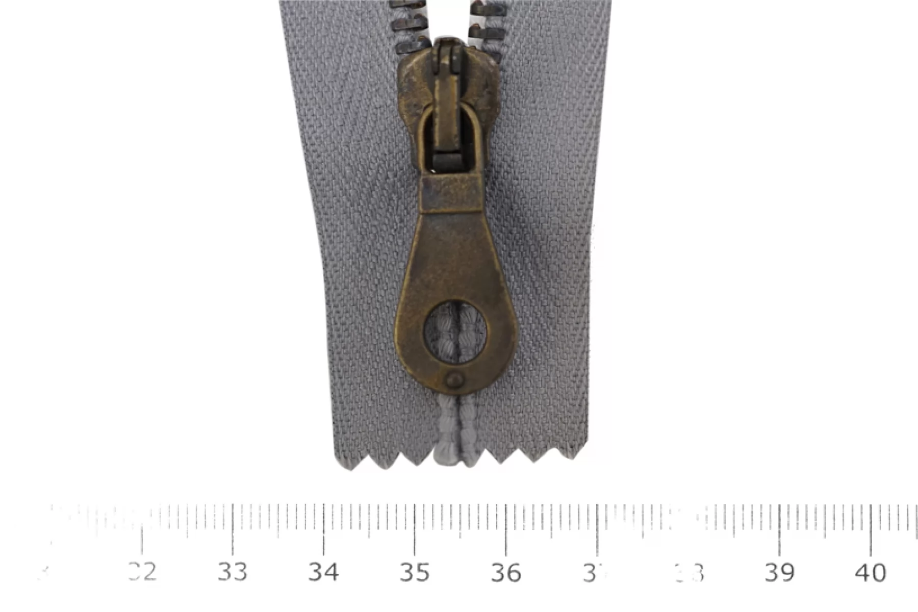 Молния от "Lampo" неразъемная, однозамковая, серого цвета, цвет зубцов бронзовый, цвет пуллера и слайдера также бронзовые. Длина 25 см. Ширина молнии 3,3 см, ширина зубцов 6 мм.