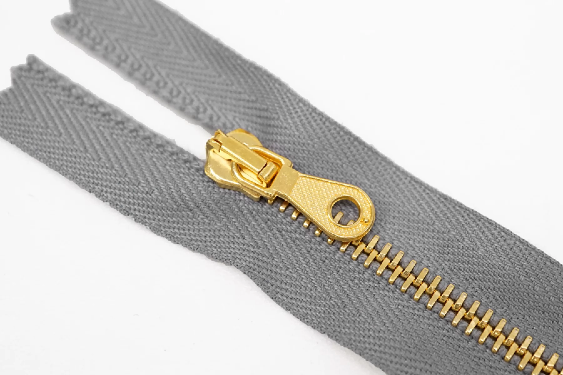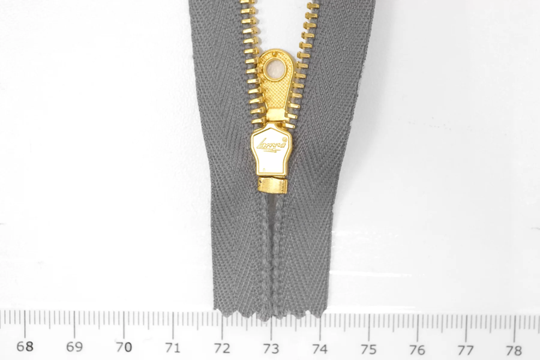Молния от "Lampo" неразъемная, однозамковая, серого цвета, цвет зубцов золото, цвет пуллера и слайдера золото. Длина 40см. Ширина молнии 2,6 см. Ширина зубцов 5мм.