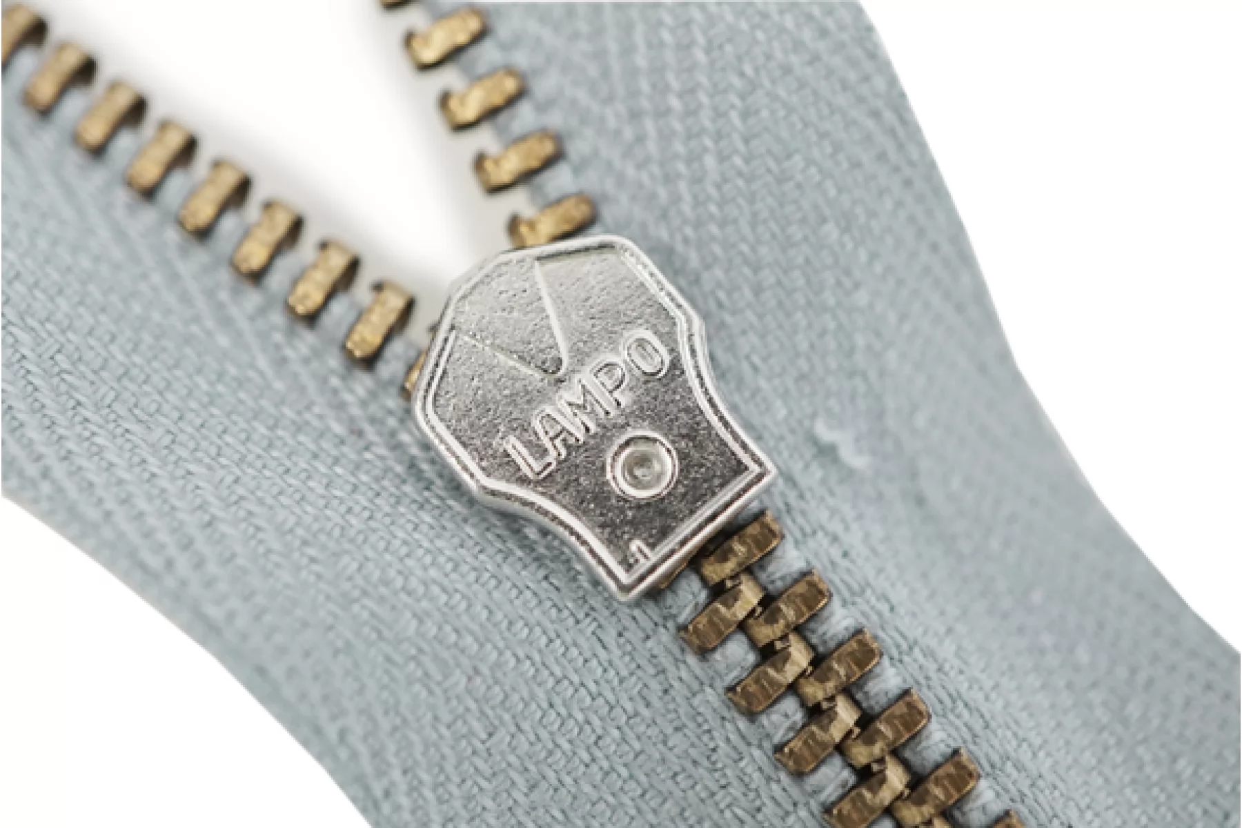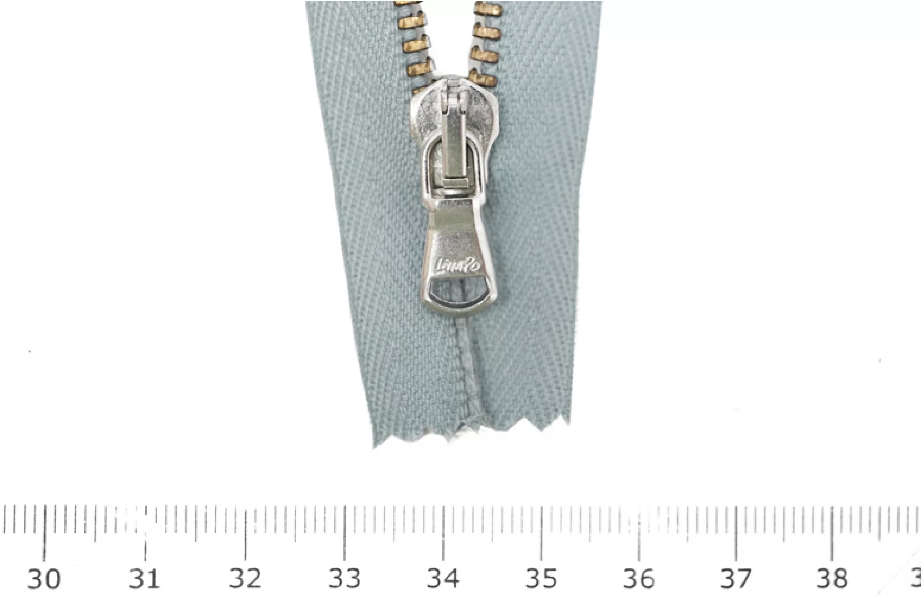 Молния от "Lampo" неразъемная, однозамковая, серо-голубого цвета, цвет зубцов бронза, цвет пуллера и слайдера серебро. Длина 18 см. Ширина молнии 2,6 см. Ширина зубцов 4 мм.