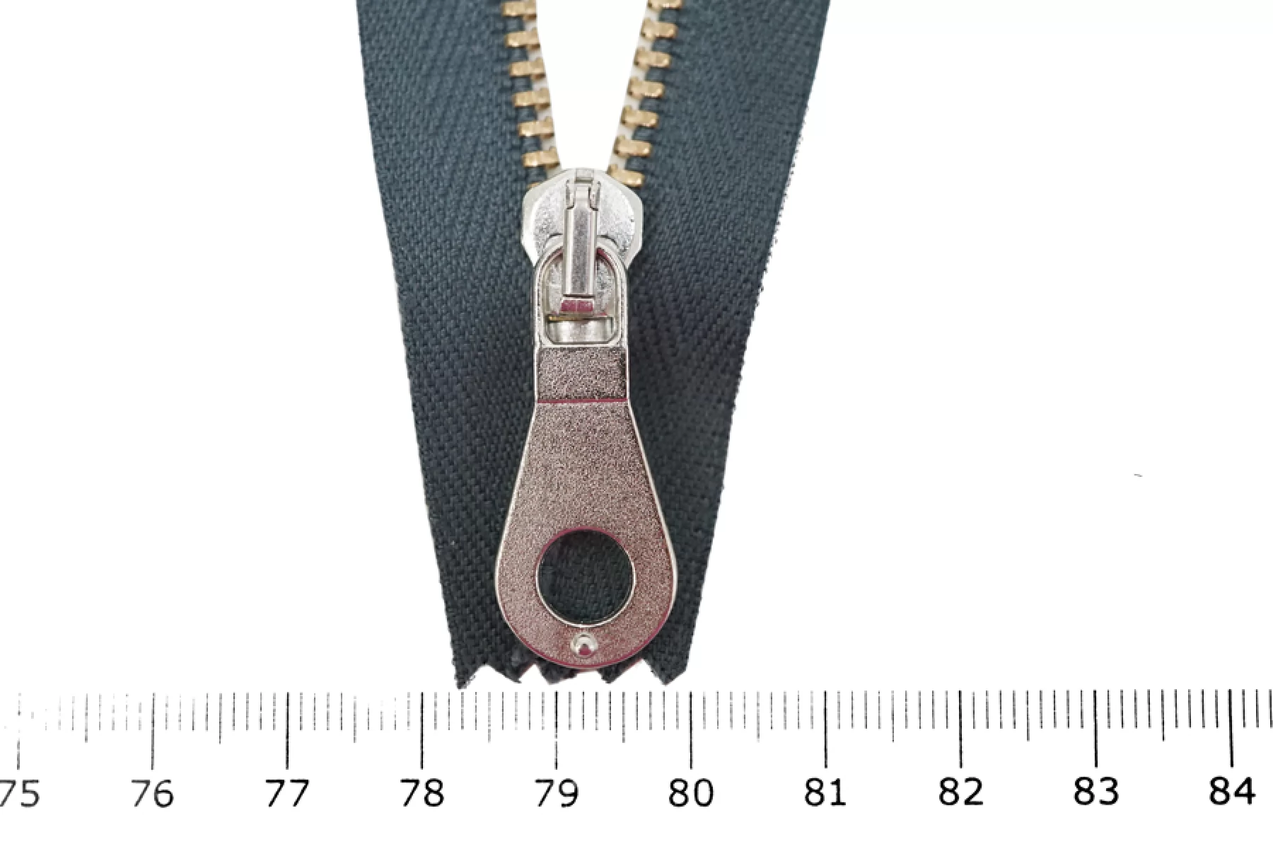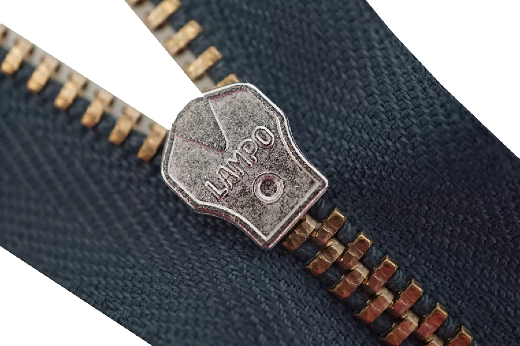 Молния от Итальянского производителя "Lampo" неразъемная, однозамковая, цвет - серо-синий, цвет зубцов золотой, цвет пуллера и слайдера серебряные. Длина 26 см. Ширина молнии 2,6 см, ширина зубцов 5 мм.