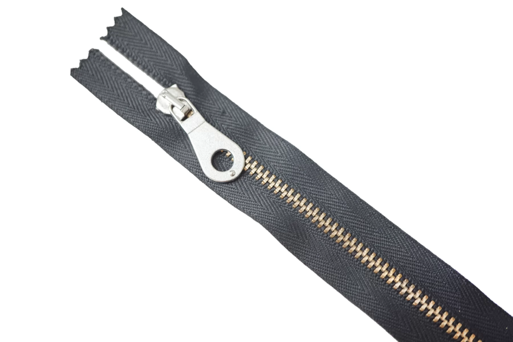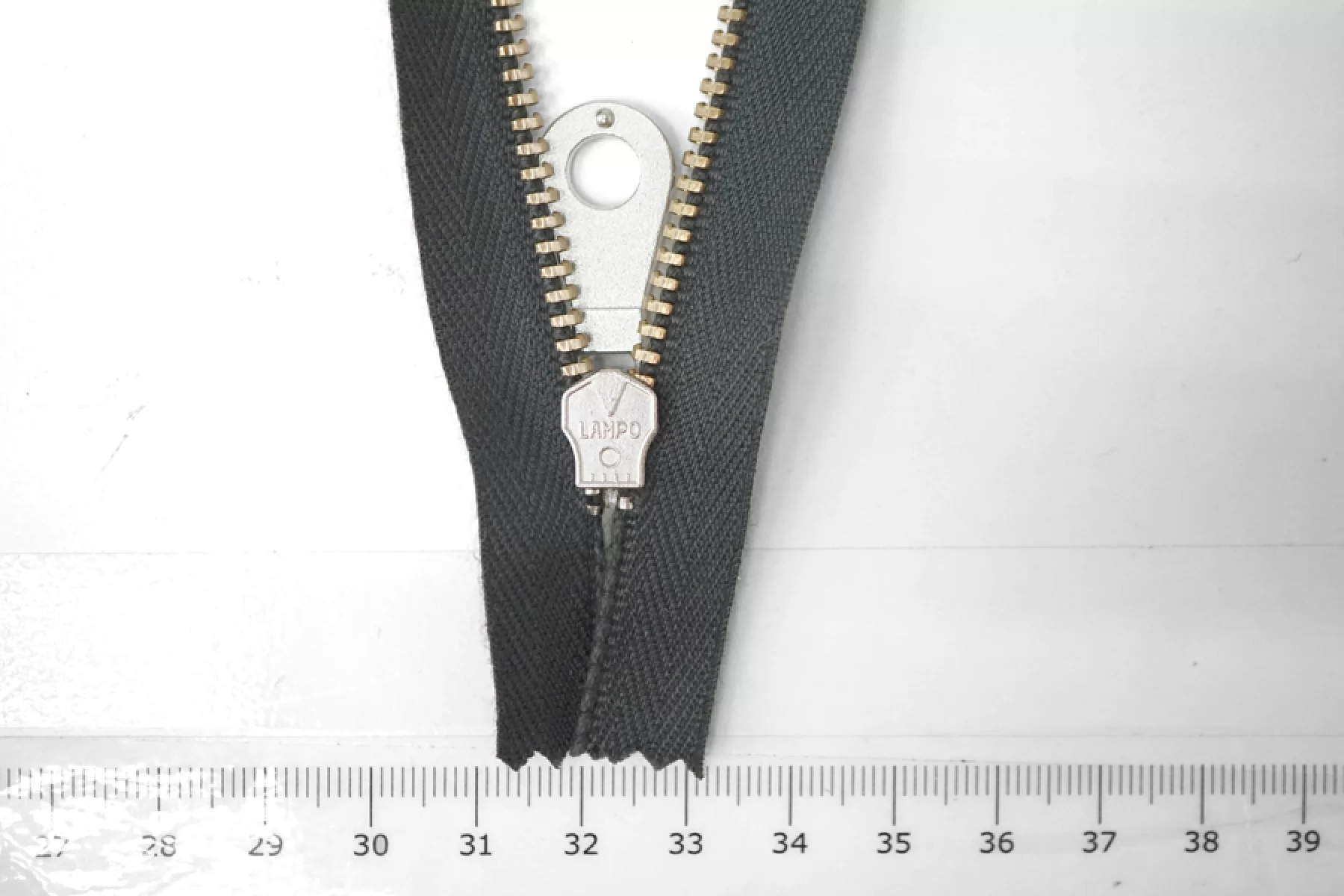 Молния от "Lampo" неразъемная, темно-серая, цвет зубцов светло-золотистый, крупный слайдер и пулер серебристый. Длина 25 см. Ширина молнии 2,6 см. Ширина зубцов 4мм.