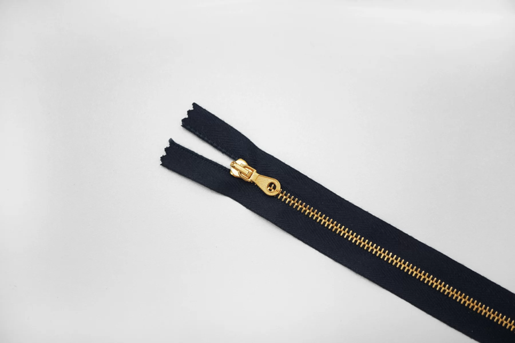 Молния металлическая от "Lampo" неразъемная, темно-синего цвета, цвет пуллера и слайдера золотого. Длина 16 см.