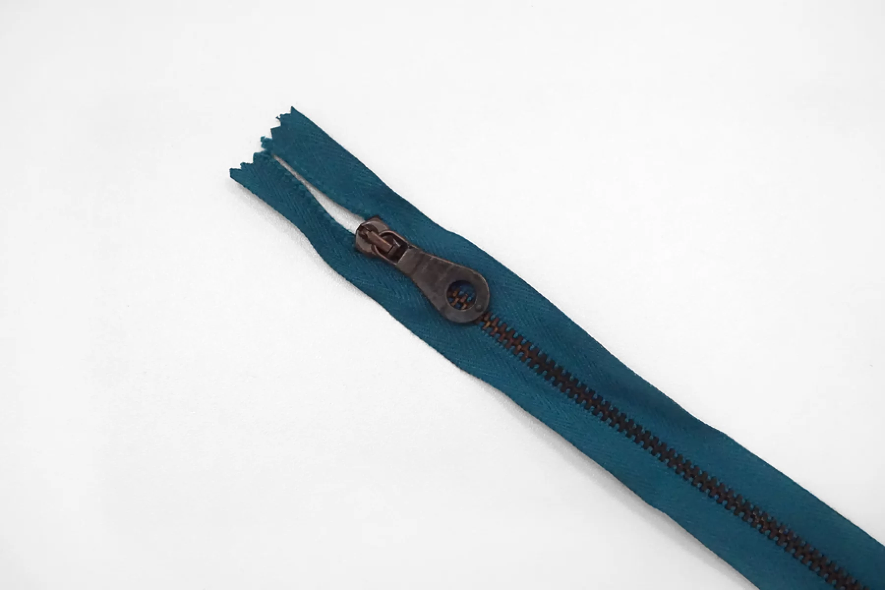 Молния металлическая от "Lampo" неразъемная, тёмно-бирюзового цвета, цвет слайдера , пуллера и цвет зубцов бронзовый. Длина 25.5 см. Внимание, все металлически элементы могут пачкаться.