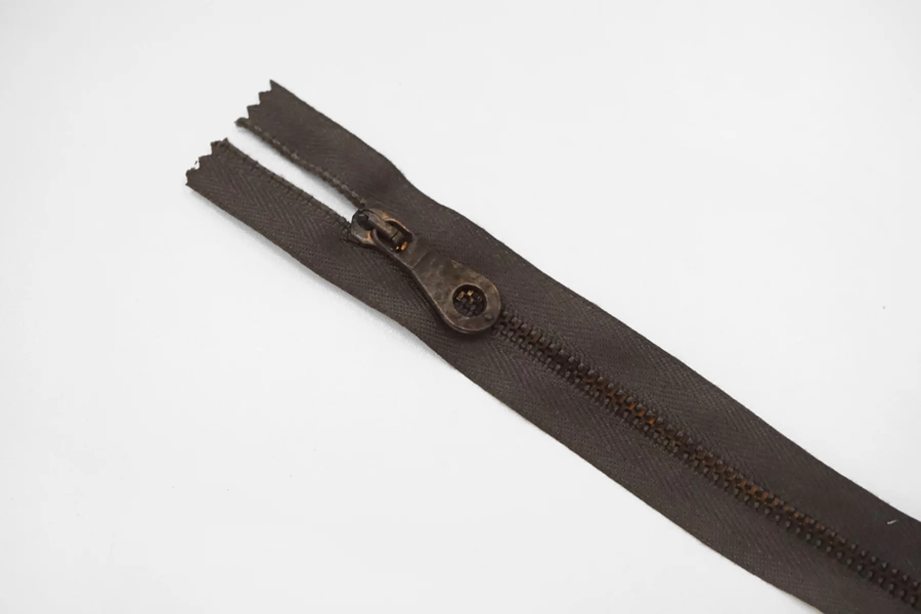 Молния металлическая от "Lampo" неразъемная, тёмно-коричневого цвета, цвет слайдера , пуллера и цвет зубцов бронзовый. Длина 26 см. Внимание, все металлически элементы могут пачкаться.