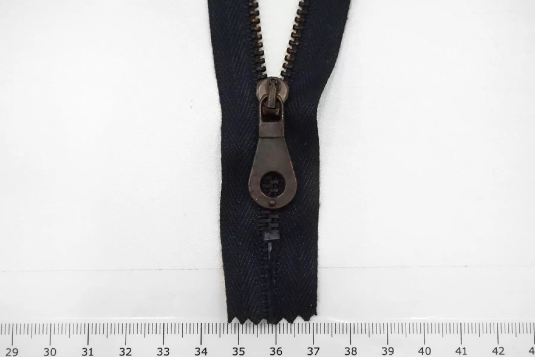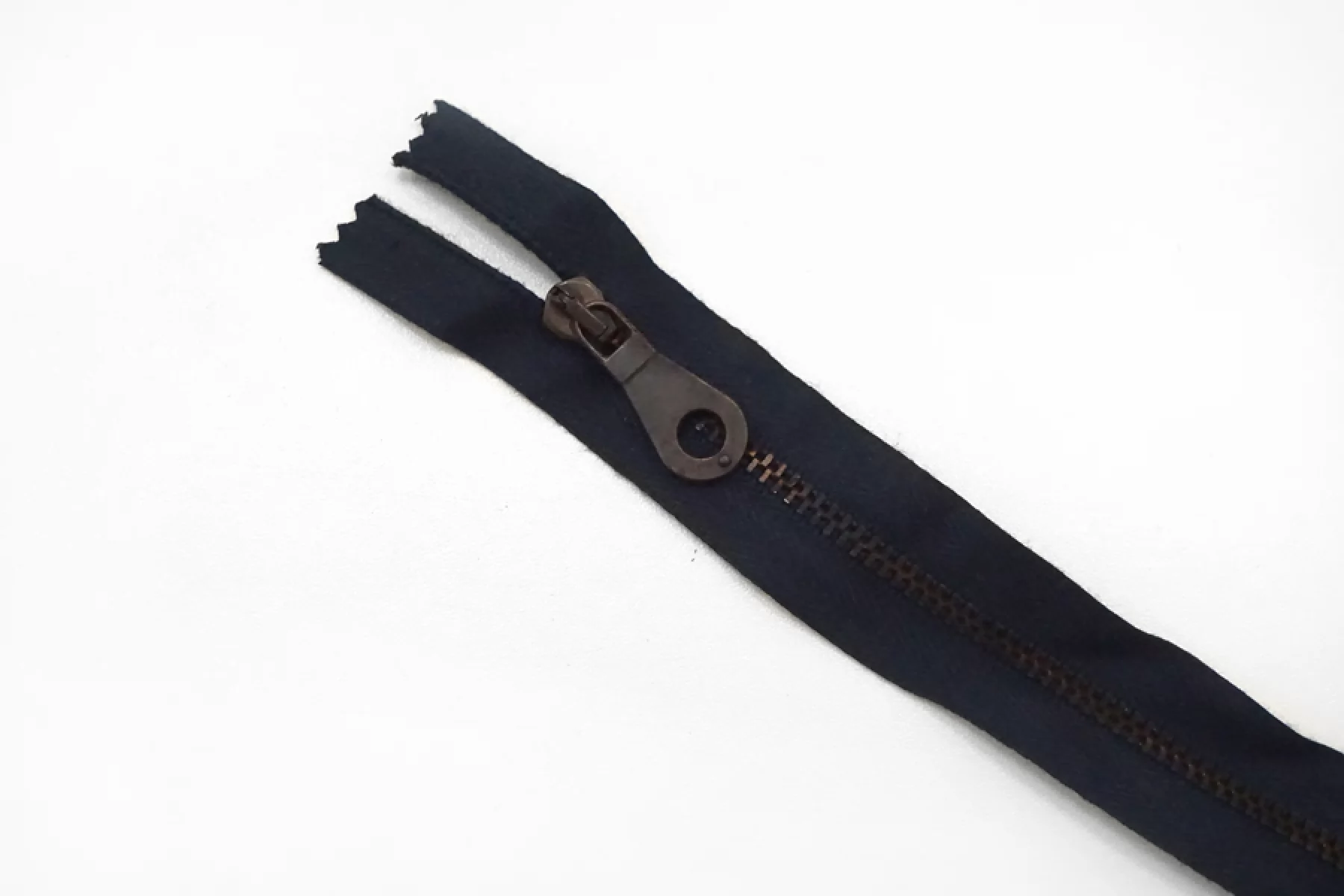 Молния металлическая от "Lampo" неразъемная, тёмно-синего цвета, цвет слайдера , пуллера и цвет зубцов бронзовый. Длина 25.5 см. Внимание, все металлически элементы могут пачкаться.