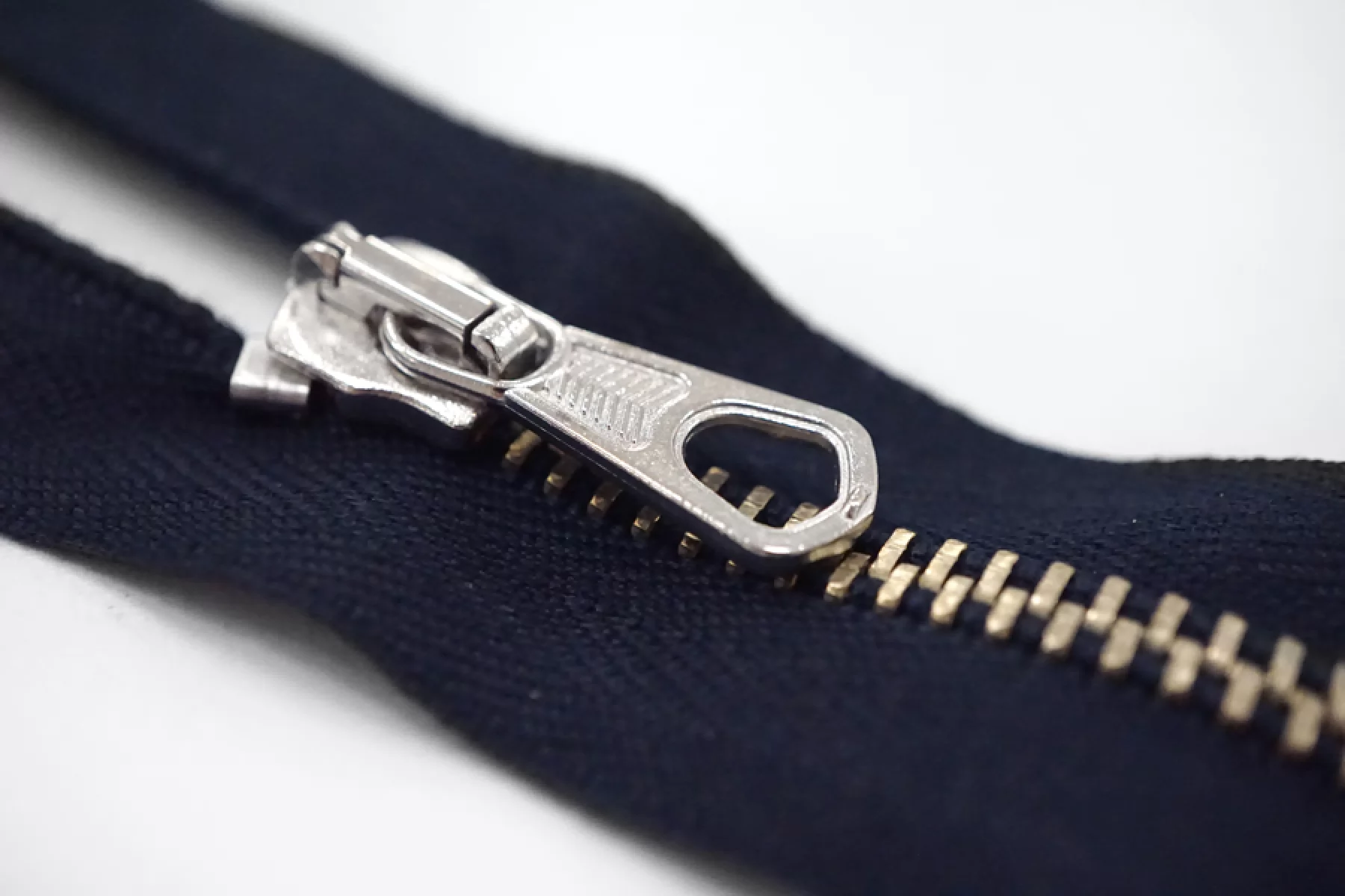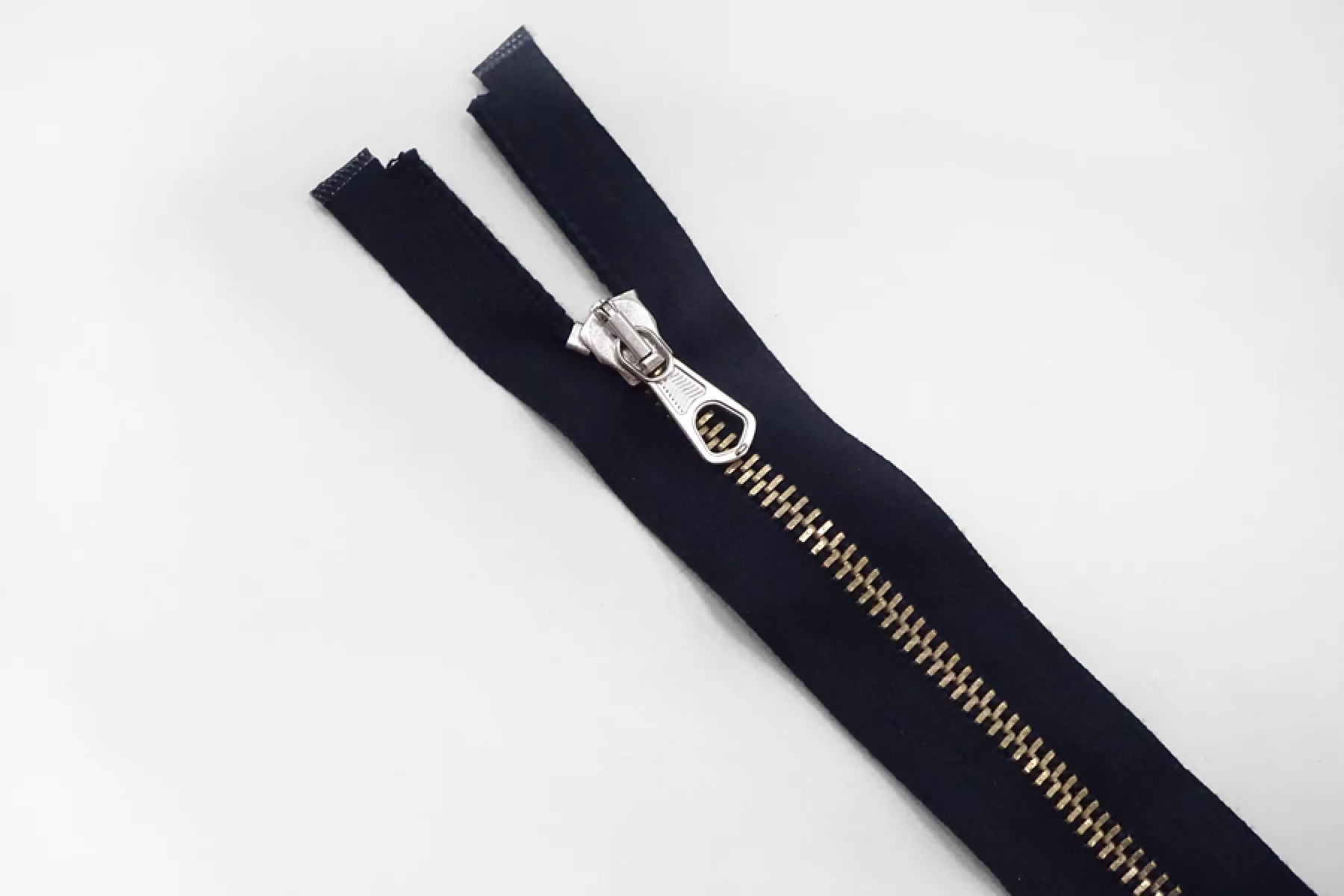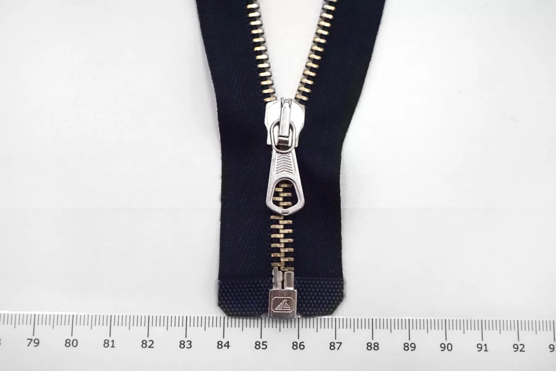 Молния металлическая от "Lampo" неразъемная, тёмно-синего цвета, цвет слайдера и пуллера серебристый, цвет зубцов золотистый. Длина 49 см.
