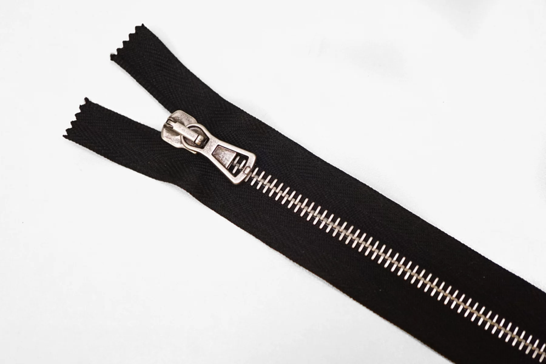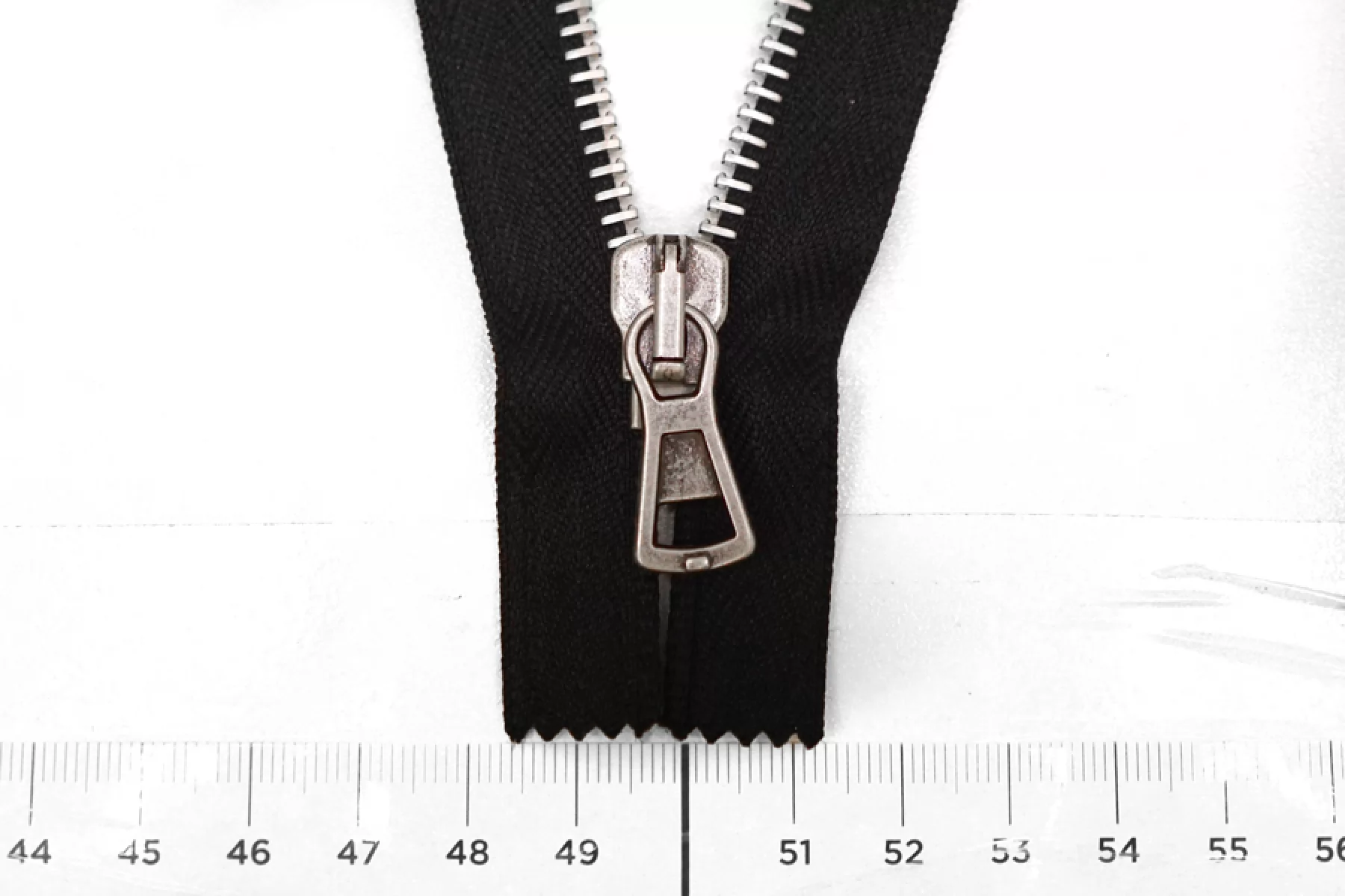 Итальянская молния неразъёмная однозамковая, черного оттенка. Материал зубцов, слайдера и пулера - металл, оттенок - серебро. Длина 14 см. Ширина молнии 3 см. Ширина зубцов 5 мм.
