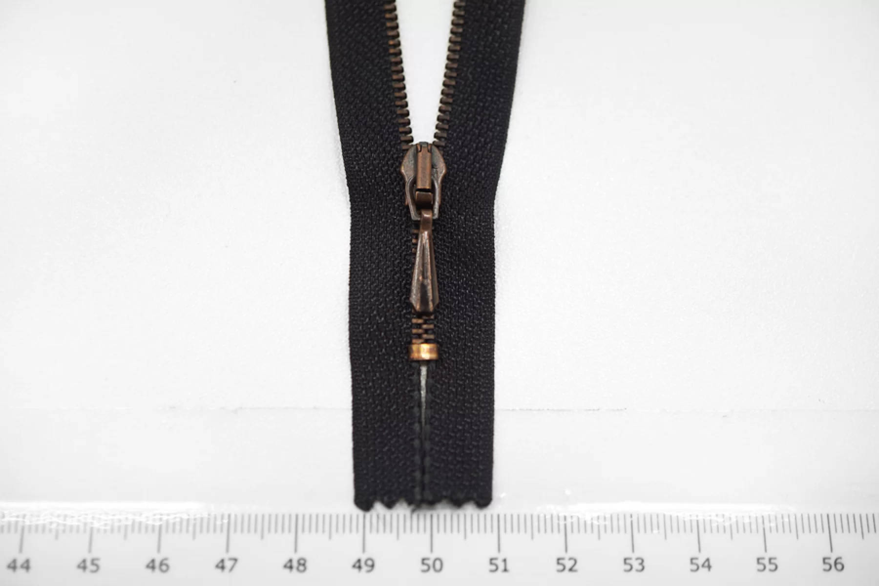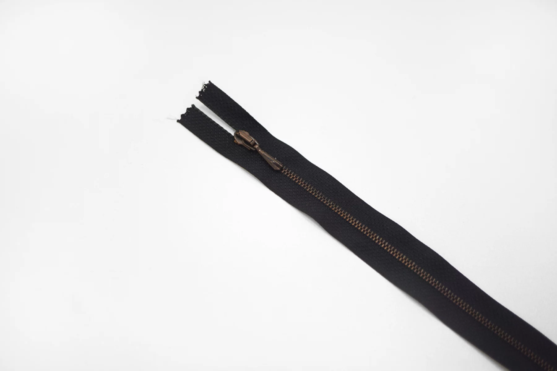 Молния от Lampo неразъемная, однозамковая, черного цвета, цвет зубцов бронзовый. Длина 18 см.