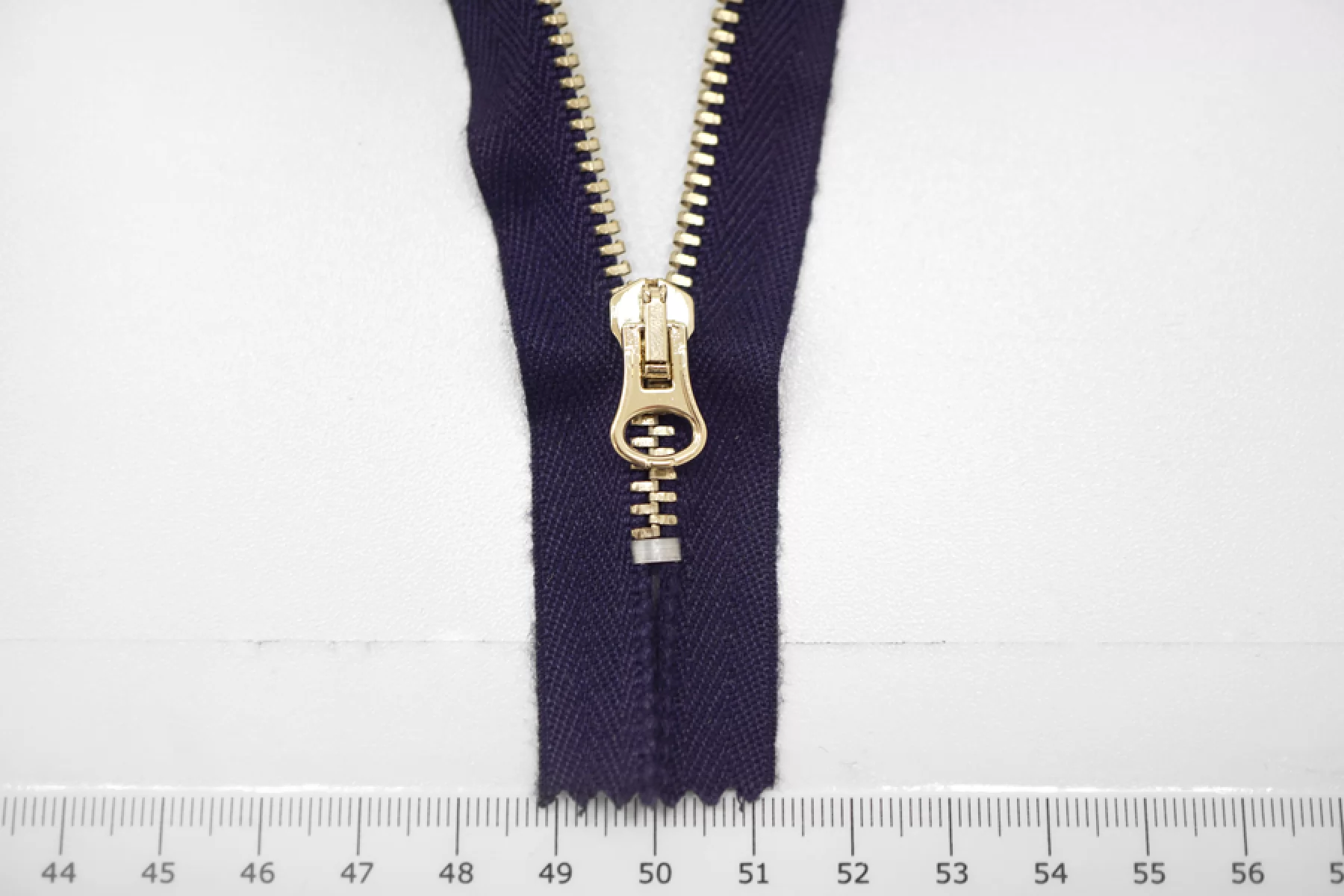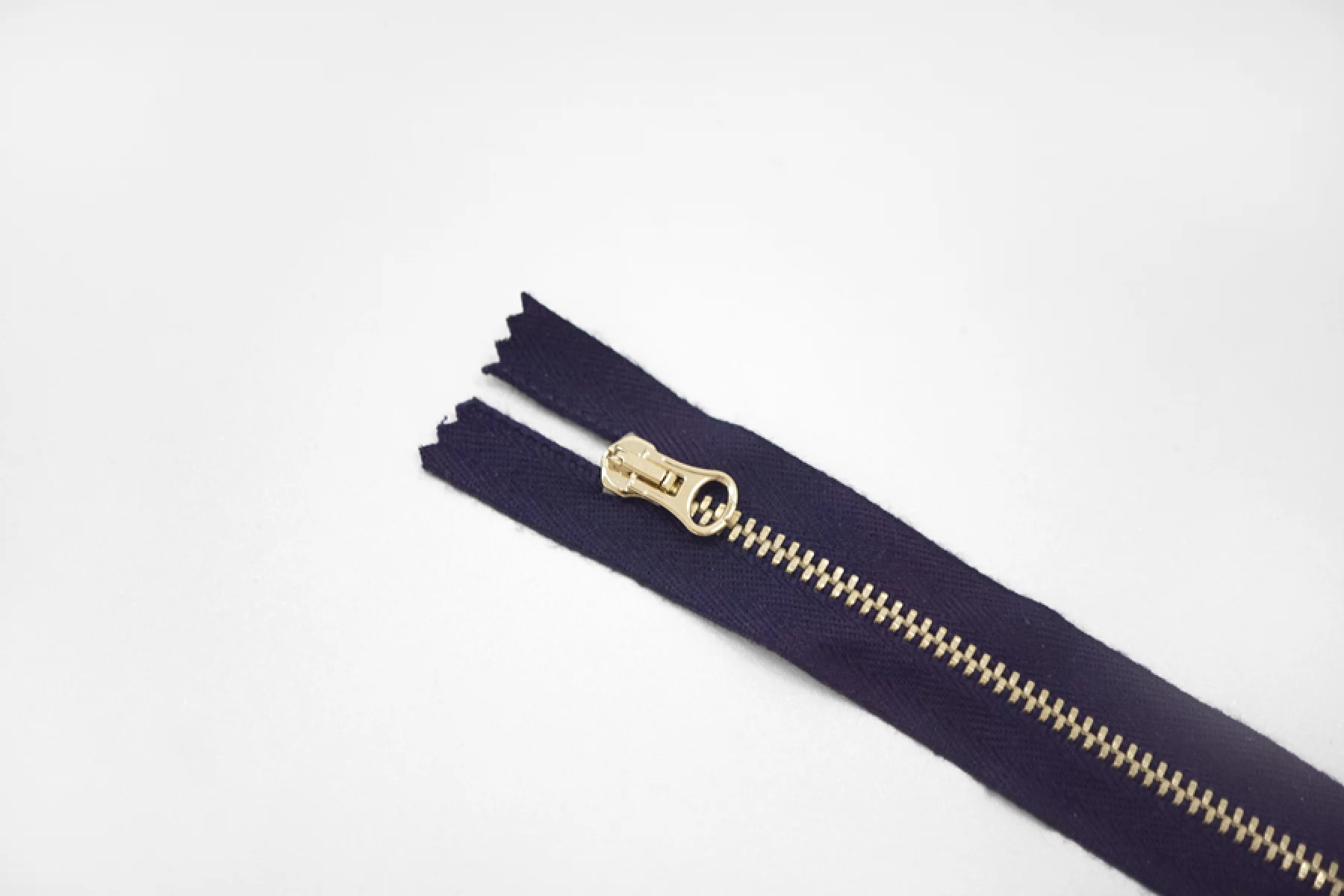 Молния от Lampo неразъемная, однозамковая, темно-синего цвета, цвет зубцов золотистый. Длина 12 см.