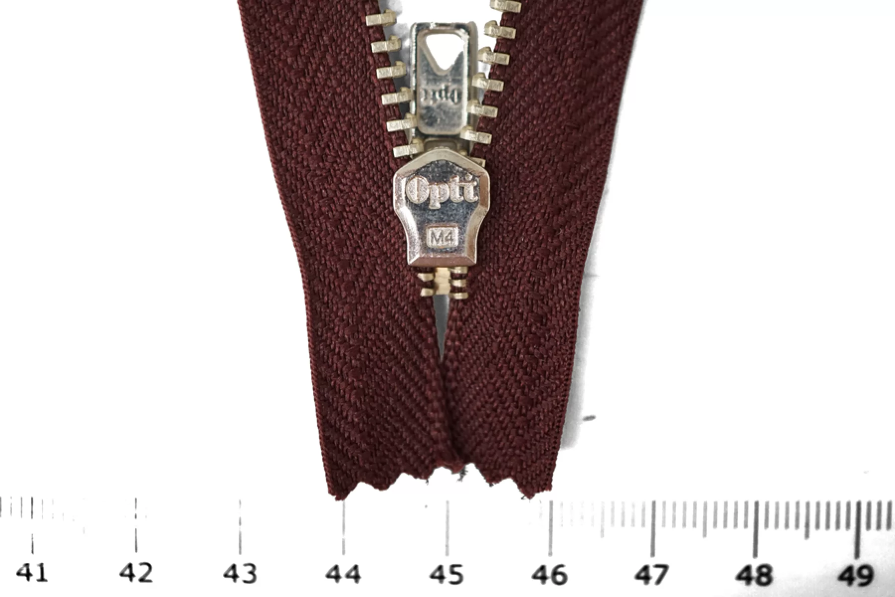 Молния неразъемная Opti винного цвета, цвет зубцов, слайдер и пулер - серебро. Длина 14 см. Ширина 2,5 см. Зубцы 4 мм.