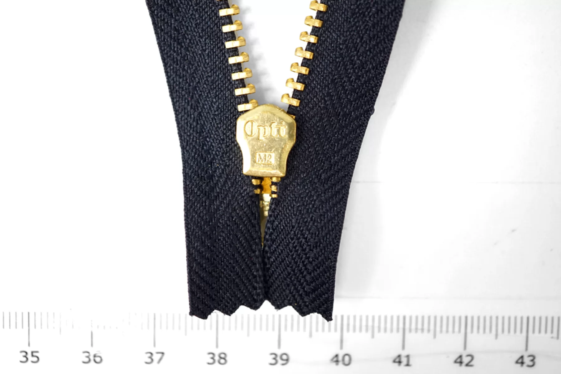 Молния неразъемная Opti иссиня-черная, цвет зубцов - золото, слайдер и пулер - серебро. Длина 13,5 см. Ширина 2,5 см. Зубцы 5 мм.