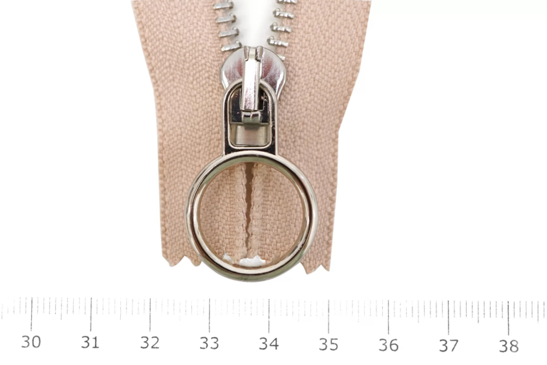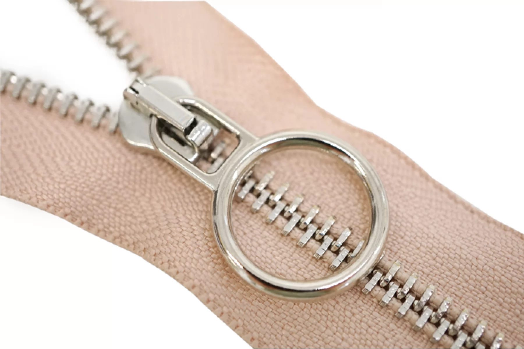 Молния неразъемная, однозамковая, пыльно-розового цвета, цвет зубцов серебро, цвет пуллера и слайдера также серебряного цвета . Длина 18 см. Ширина молнии 3,2 см, ширина зубцов 5 мм.