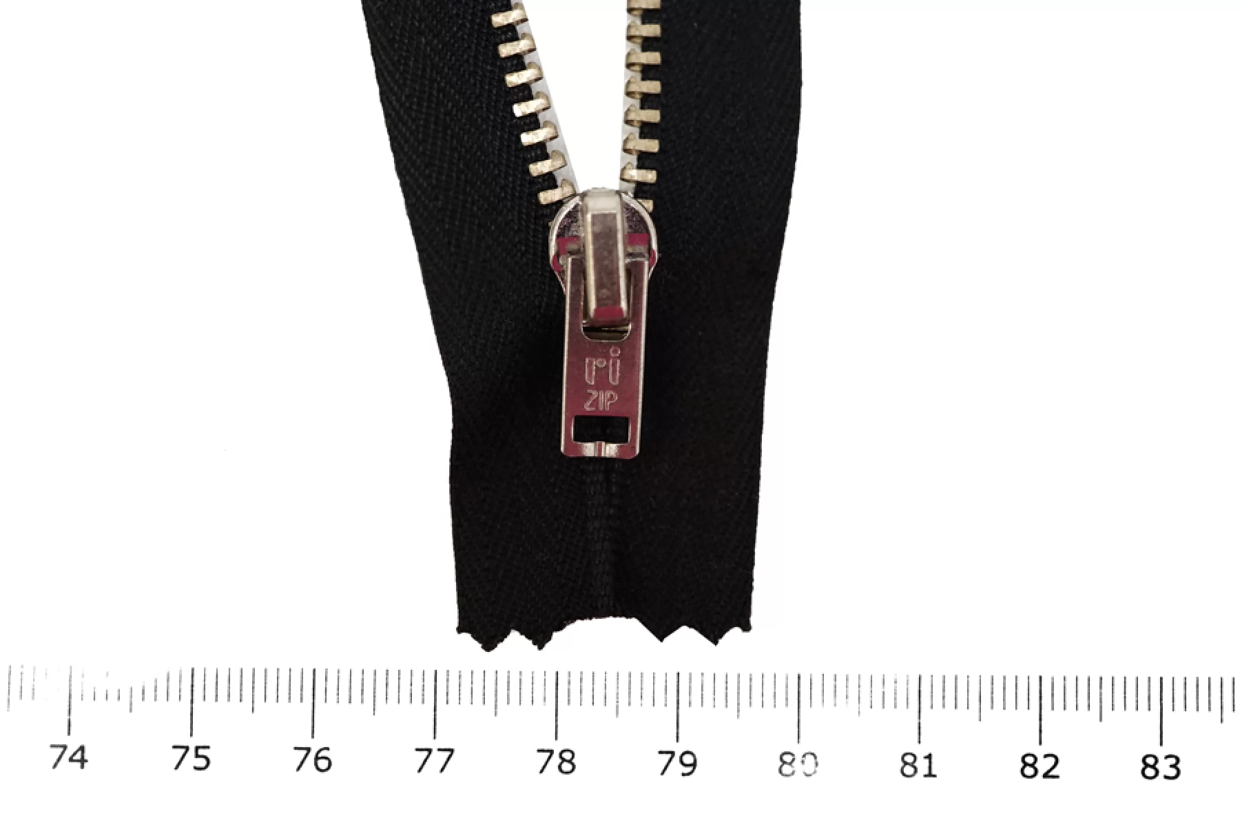 Молния "Rizip" неразъемная, однозамковая, черного цвета, цвет зубцов никель серебро, цвет пуллера и слайдера также серебряные. Длина 19,5 см. Ширина молнии 2,8 см, ширина зубцов 5 мм.