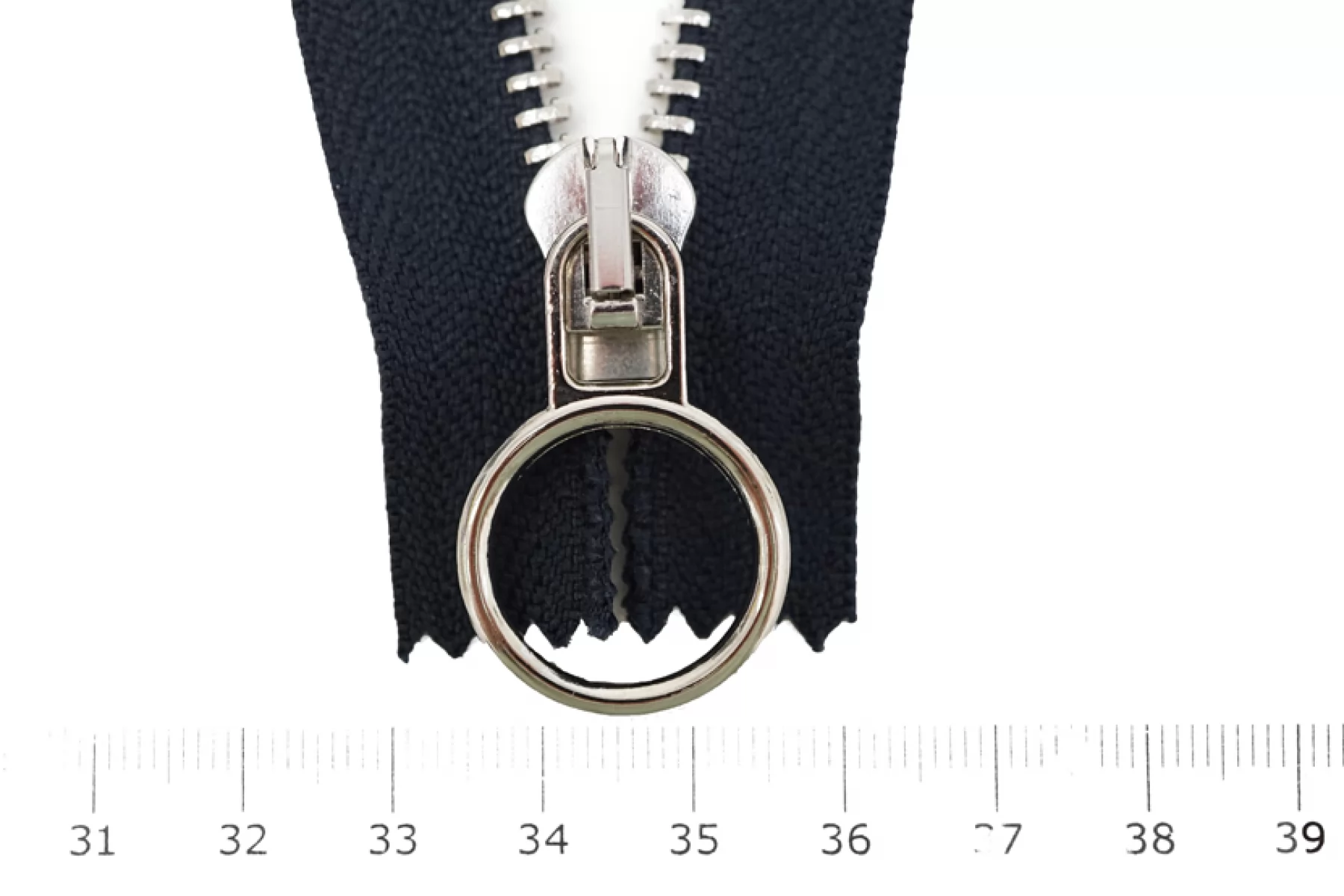 Молния неразъемная, однозамковая, темно-синего цвета, цвет зубцов серебро, цвет пуллера и слайдера также серебряного цвета . Длина 18 см. Ширина молнии 3,2 см, ширина зубцов 5 мм.