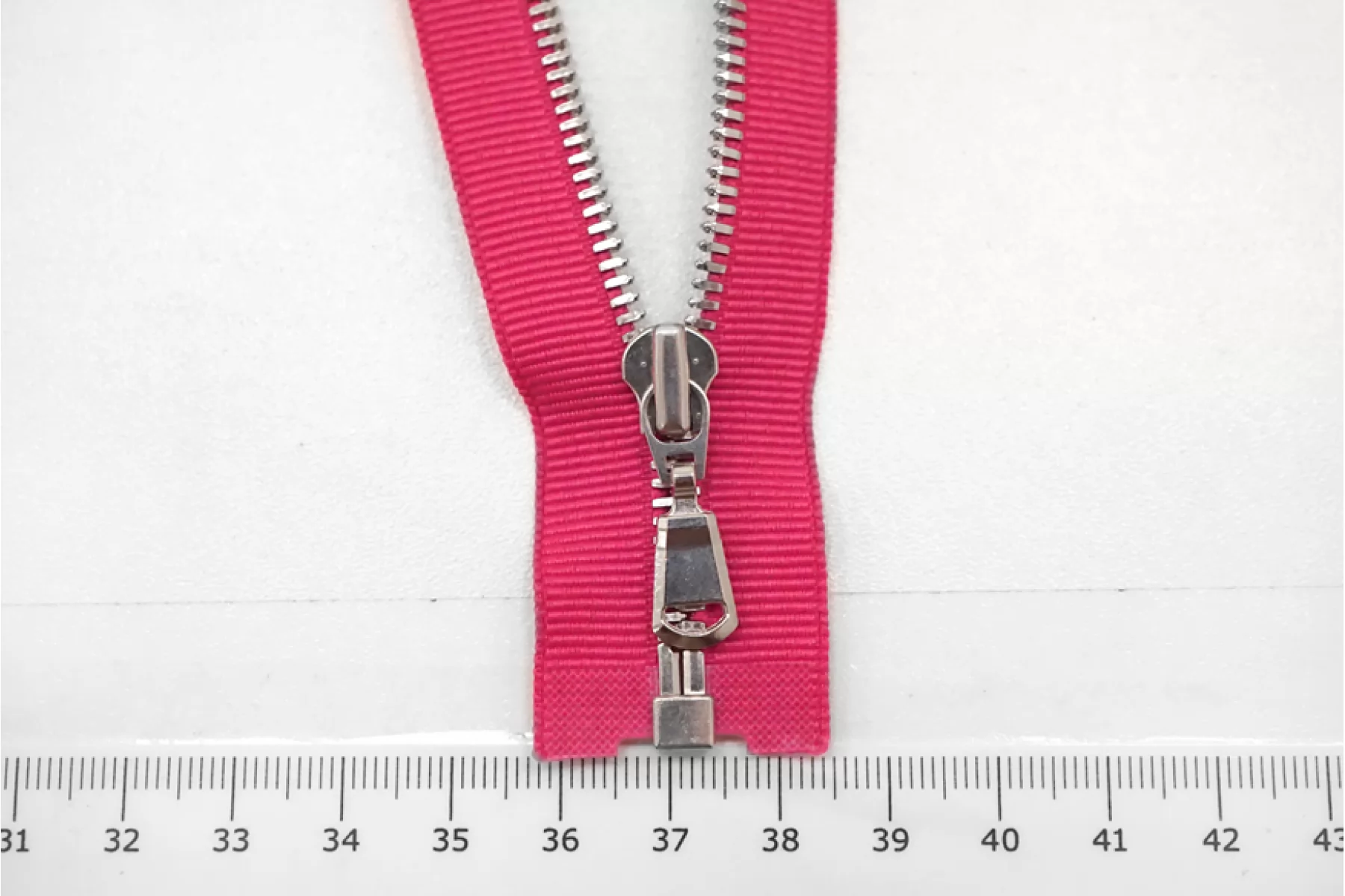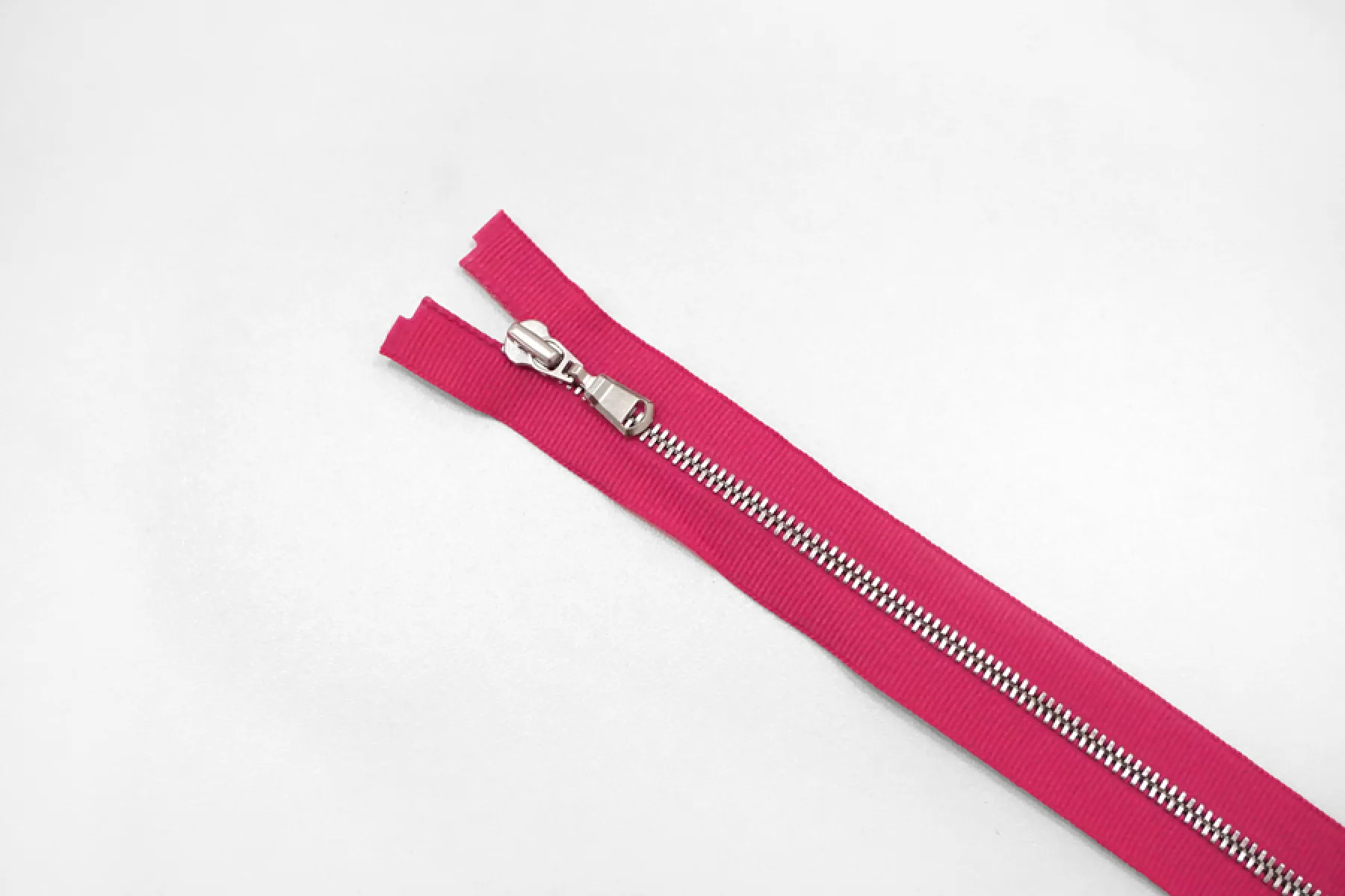 Молния металлическая от "YKK" неразъемная, цвета розовой фуксии, цвет слайде, пуллера и зубцов серебристый. Длина 37 см.