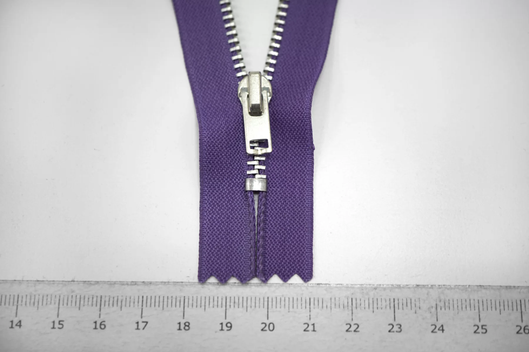Молния металлическая неразъёмная, однозамковая, фиолетового цвета, зубцы серебристые. Длина 14,5 см.