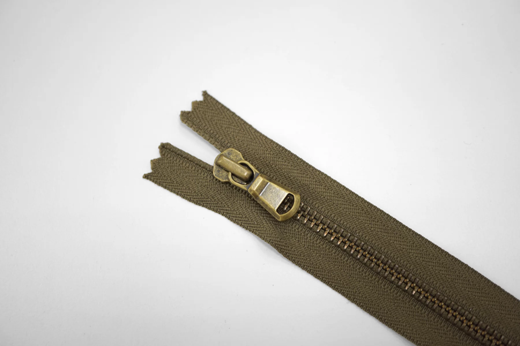 Молния металлическая неразъёмная однозамковая "YKK" хаки 12 см E13 15092123