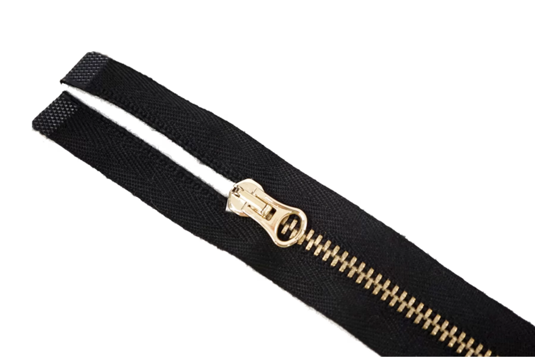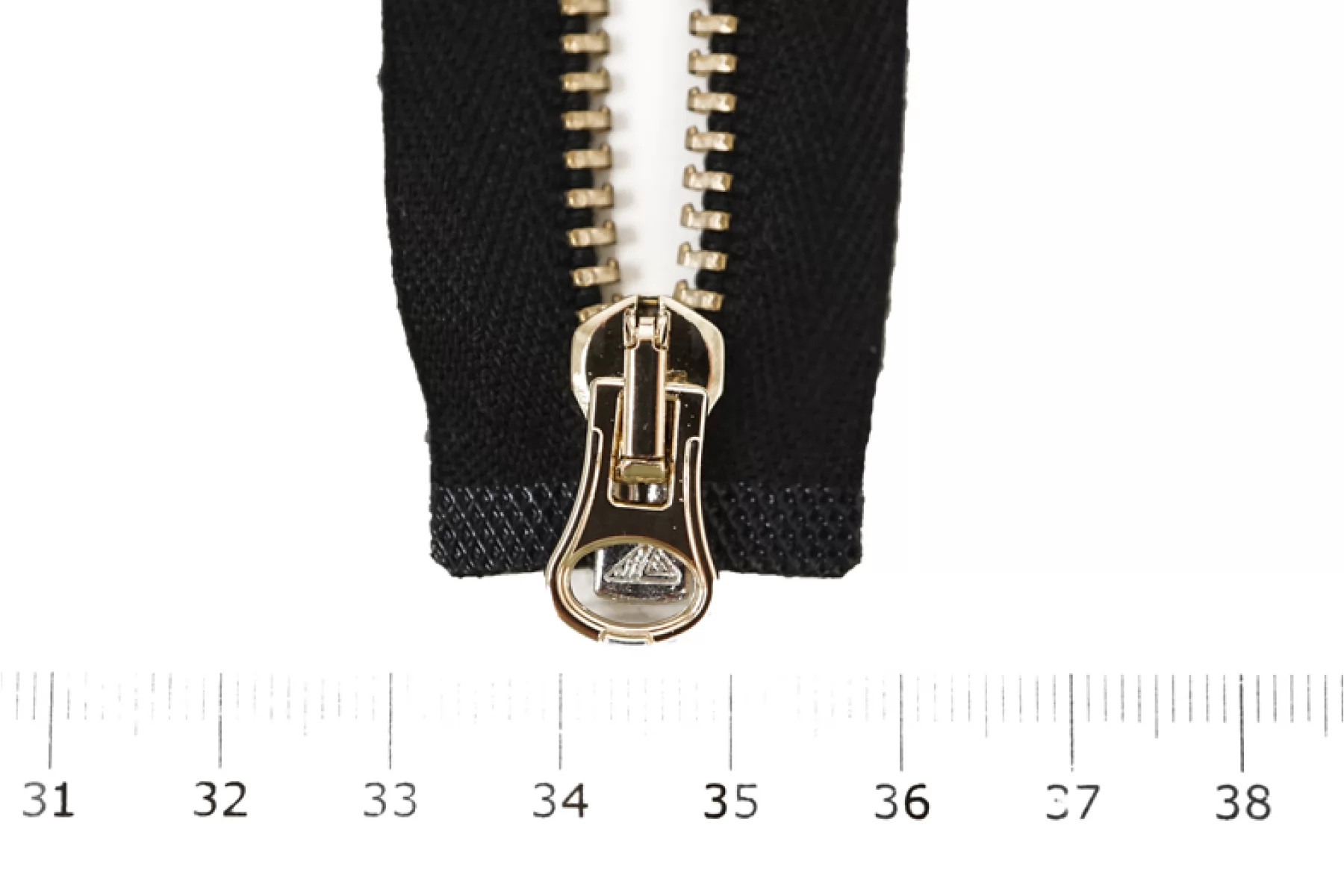 Молния металлическая однозамковая от "Lampo" разъемная. Цвет молнии классический черный. Материал основы - киперная лента, достаточно плотненькая, цвет зубцов - золотой. Слайдер и пулер золотые. Ширина молнии - 2.6 см, ширина зубцов 0,5 см. Длина молнии 50 см.