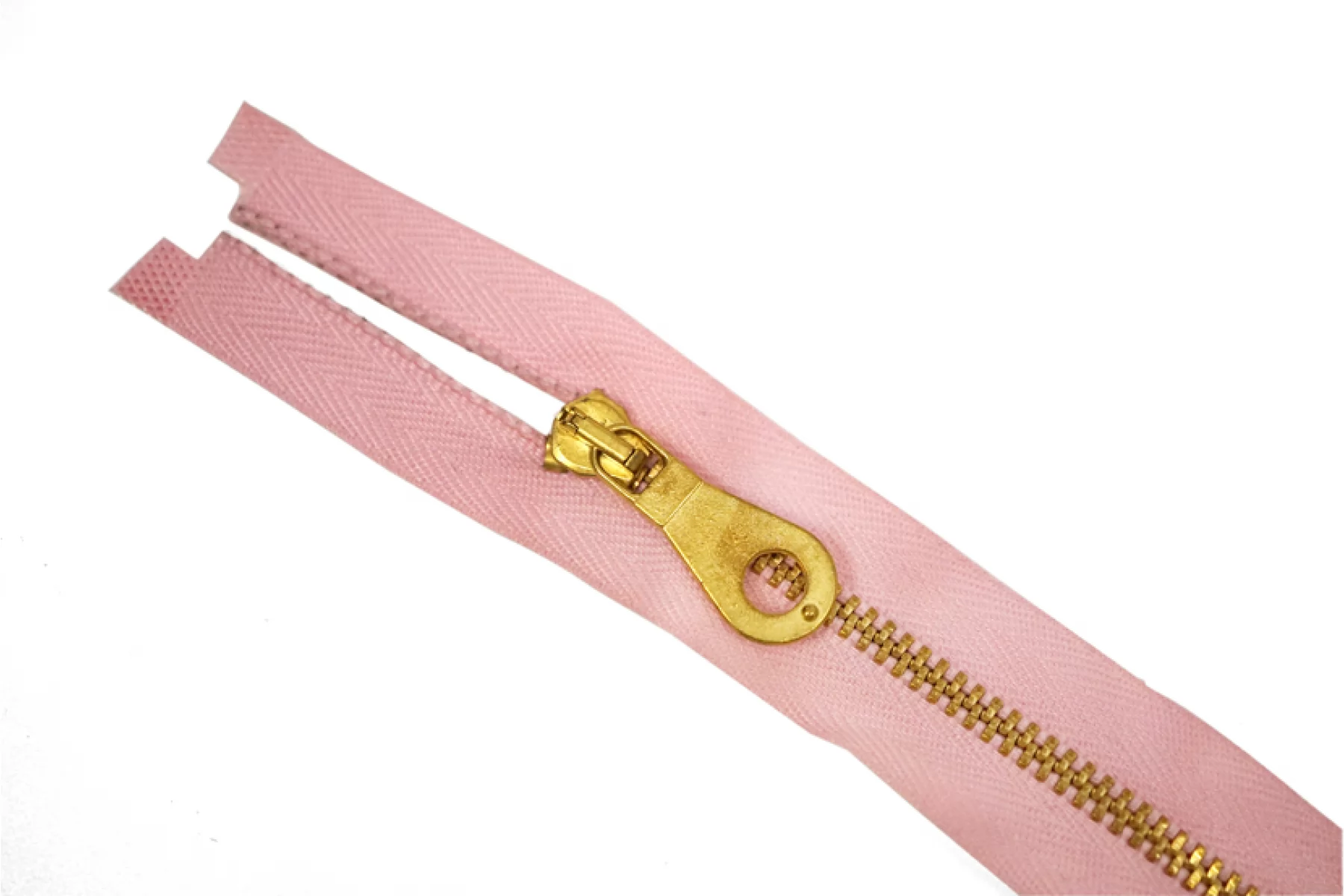 Молния металлическая однозамковая от "Lampo" разъемная. Цвет молнии розовый. Материал основы - киперная лента, достаточно мягкая, цвет зубцов - золотой. Слайдер и пулер также золотые. Ширина молнии - 2.7 см, ширина зубцов 0,5 см. Длина молнии 62 см.