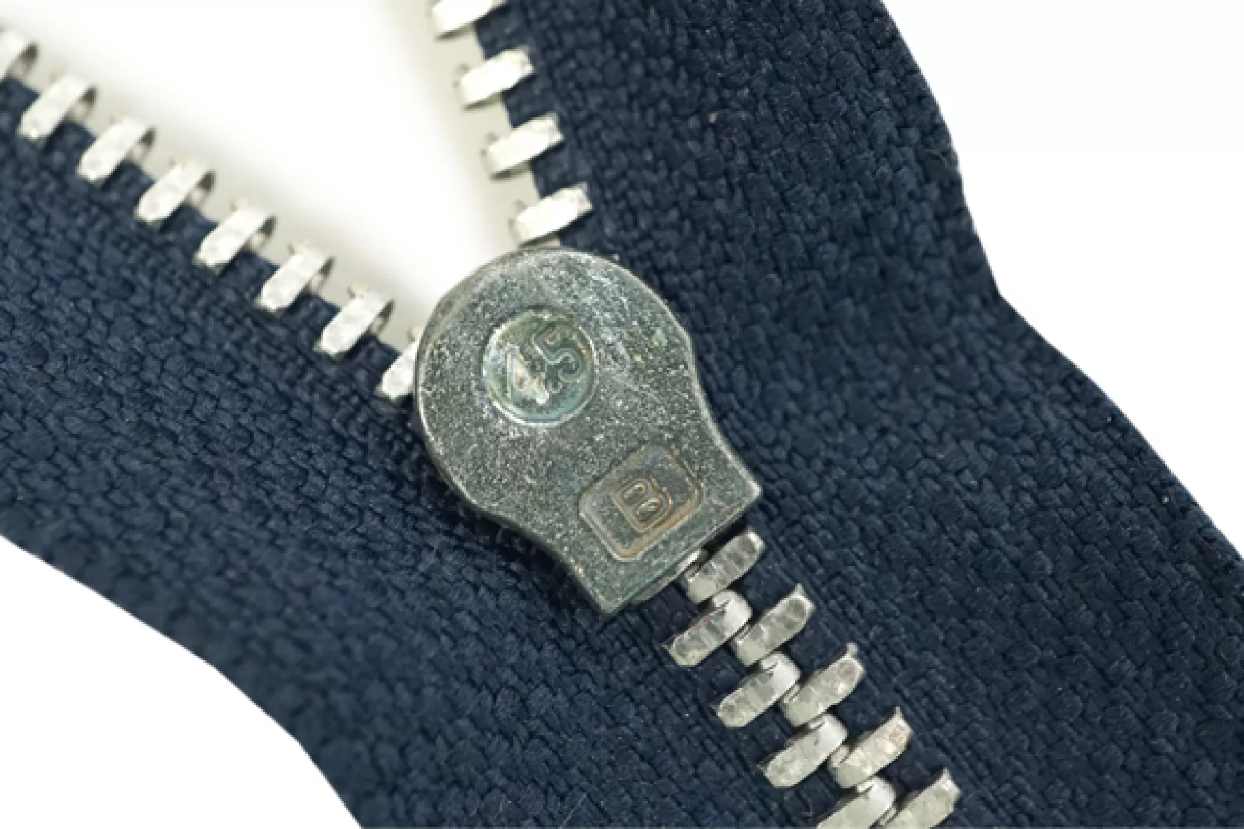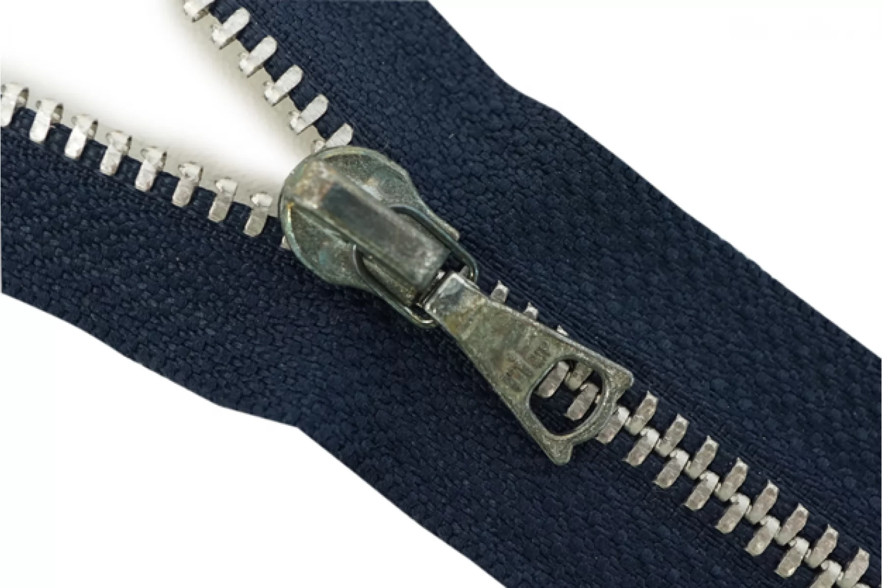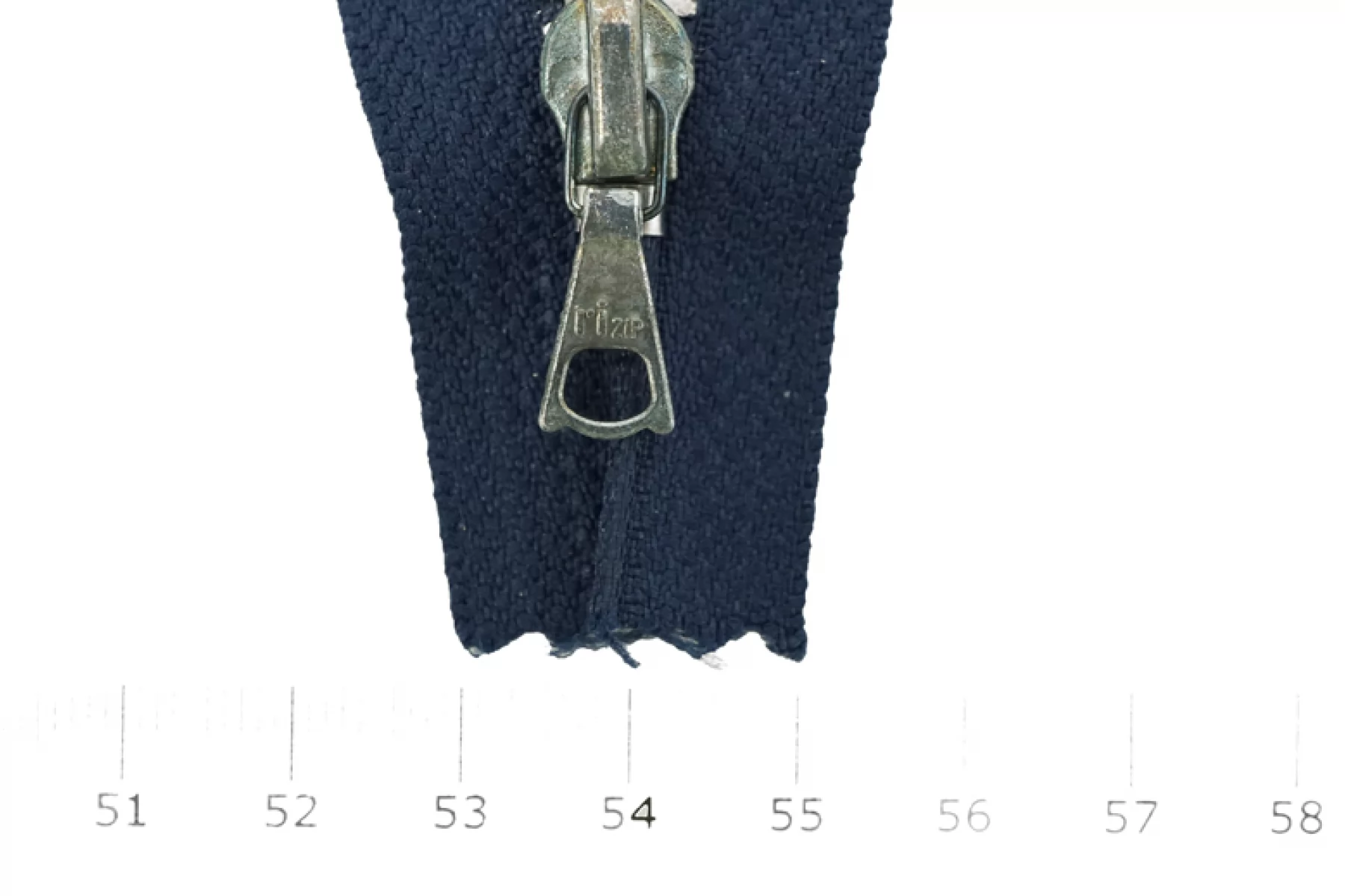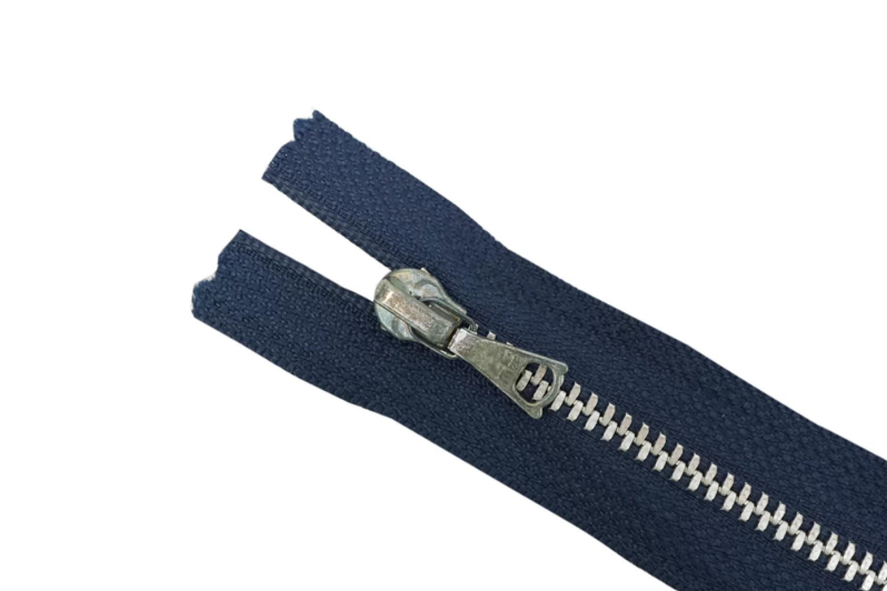 Молния металлическая однозамковая от Швейцарского производителя "RIRI". Не разъемная. Цвет молнии темно-синий. Цвет зубцов - серебряный. Слайдер и пулер металлические. Ширина молнии - 2.8 см, ширина зубцов 0,5 см. Длина молнии 10 см.