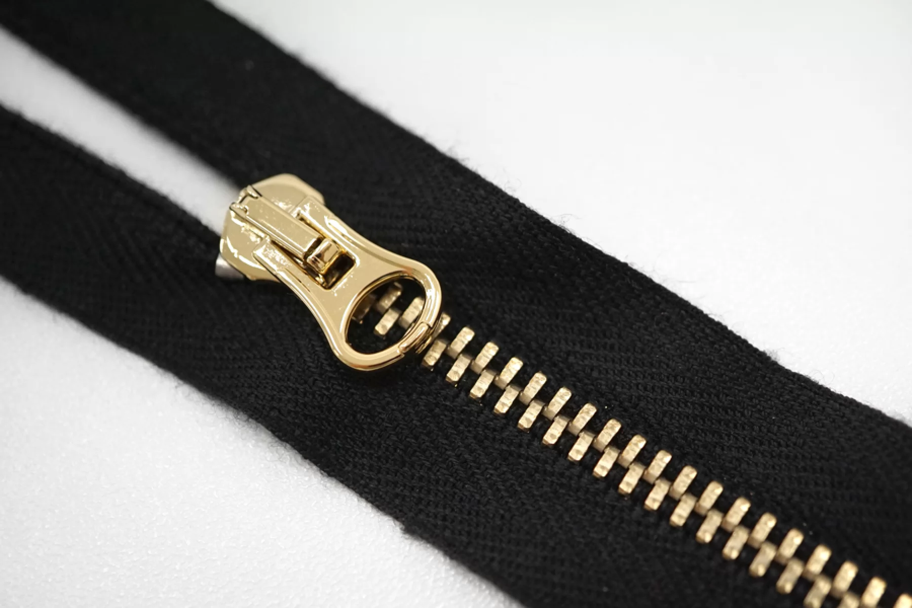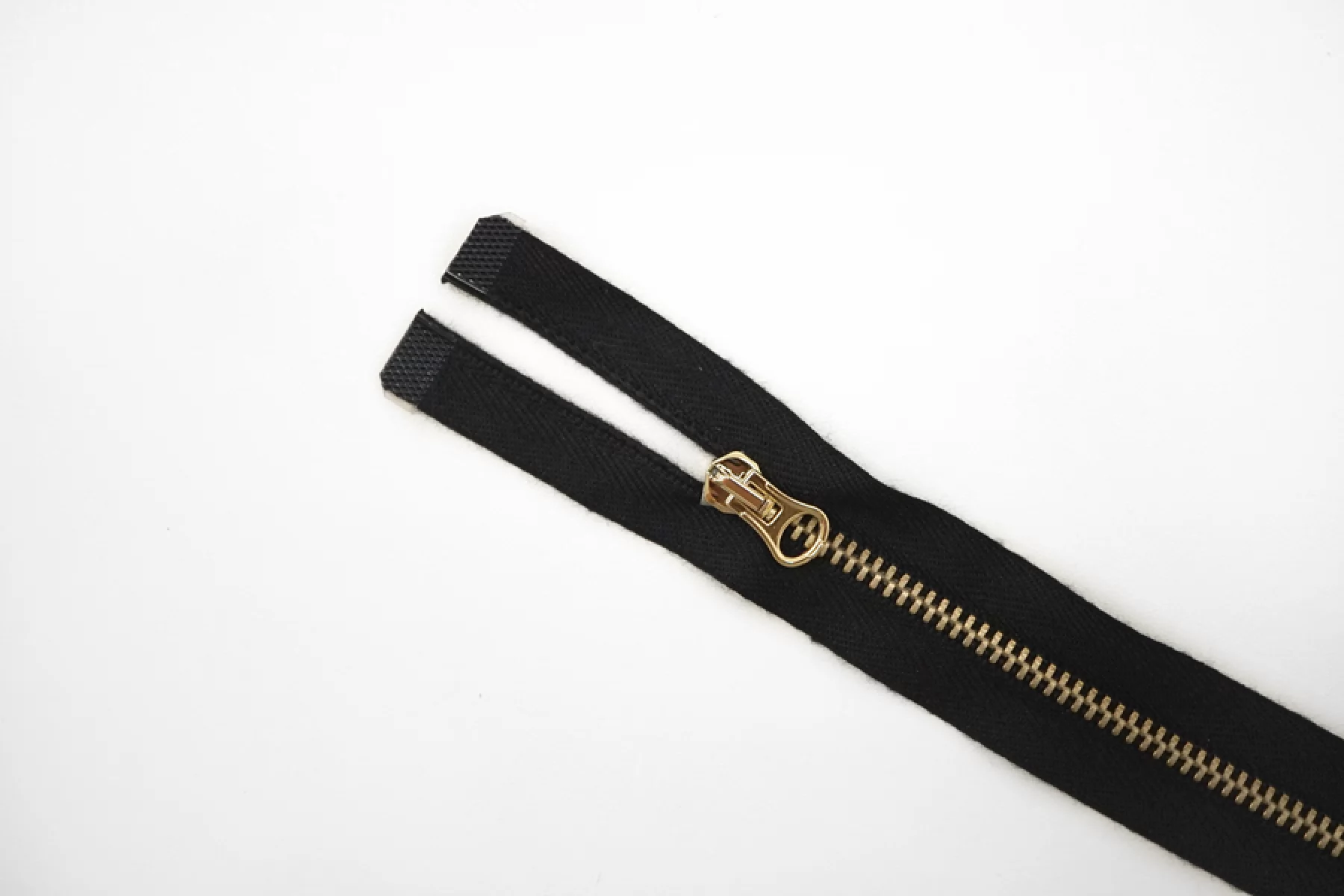 Молния металлическая однозамковая от "Lampo" разъёмная, черная, цвет зубцов золотистый. Длина 45 см.