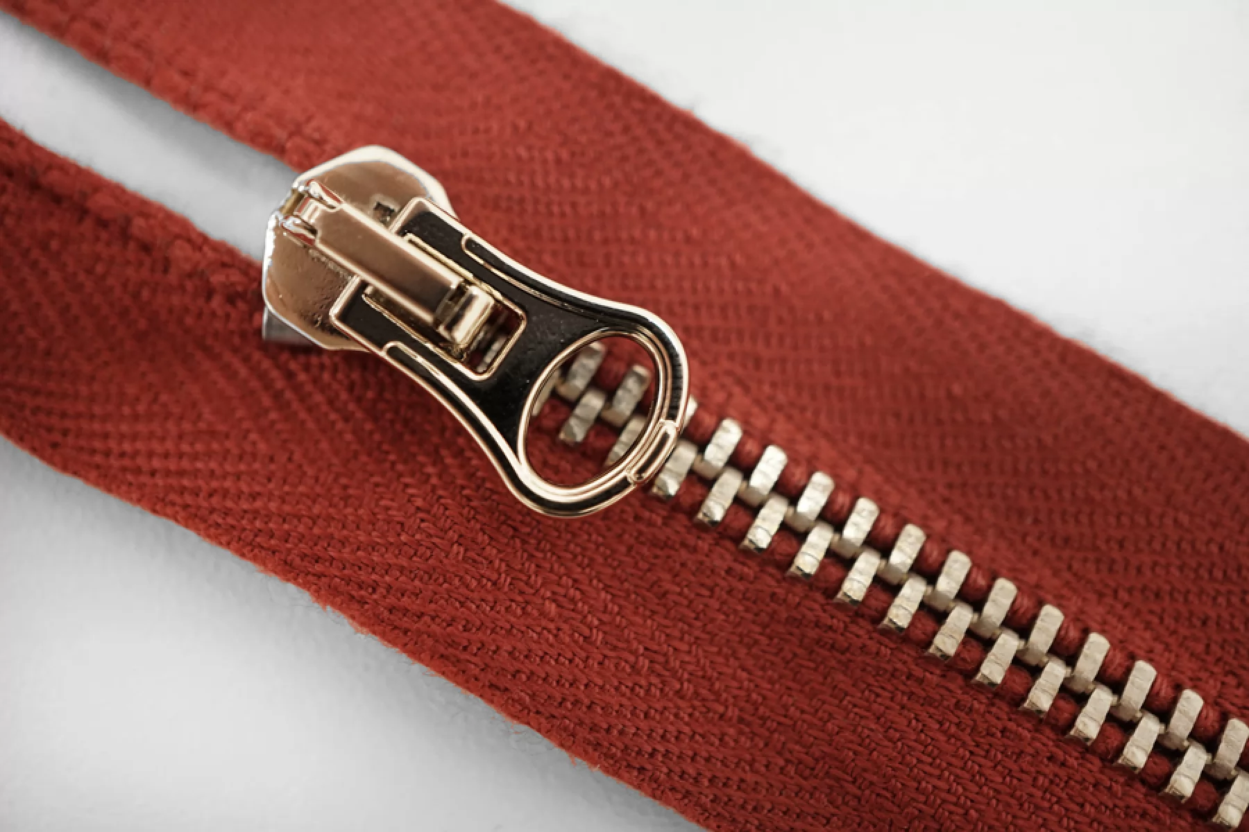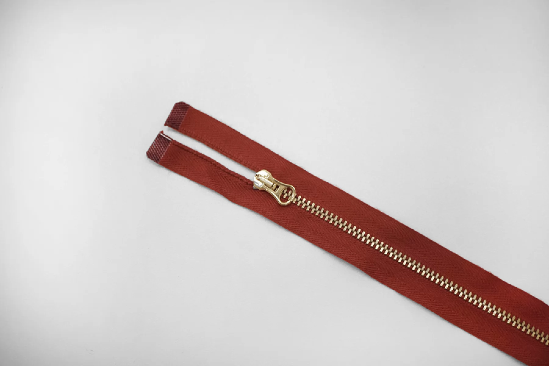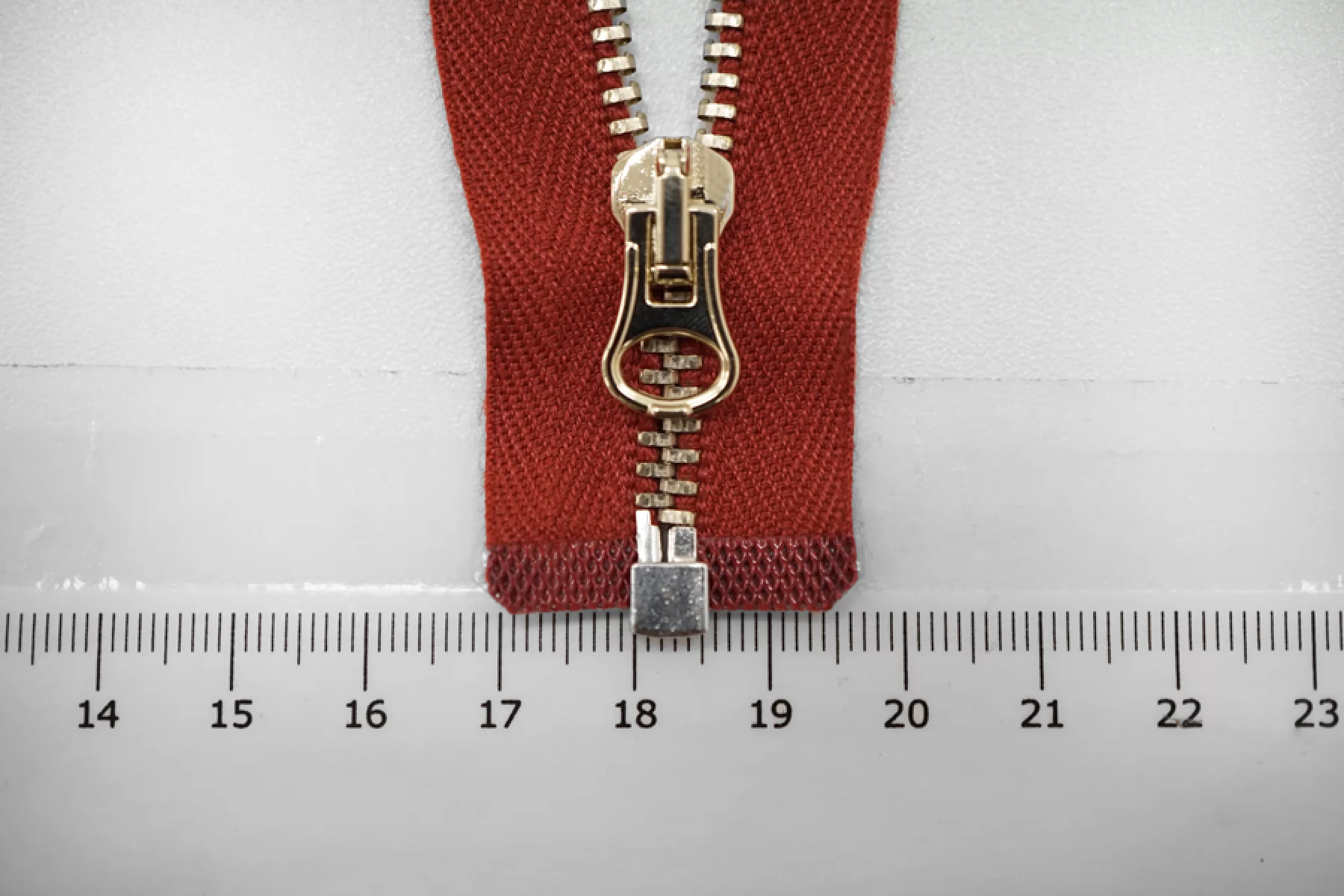 Молния металлическая однозамковая от "Lampo" разъёмная, красного цвета, пуллер и слайдера золотистый. Длина 49 см.
