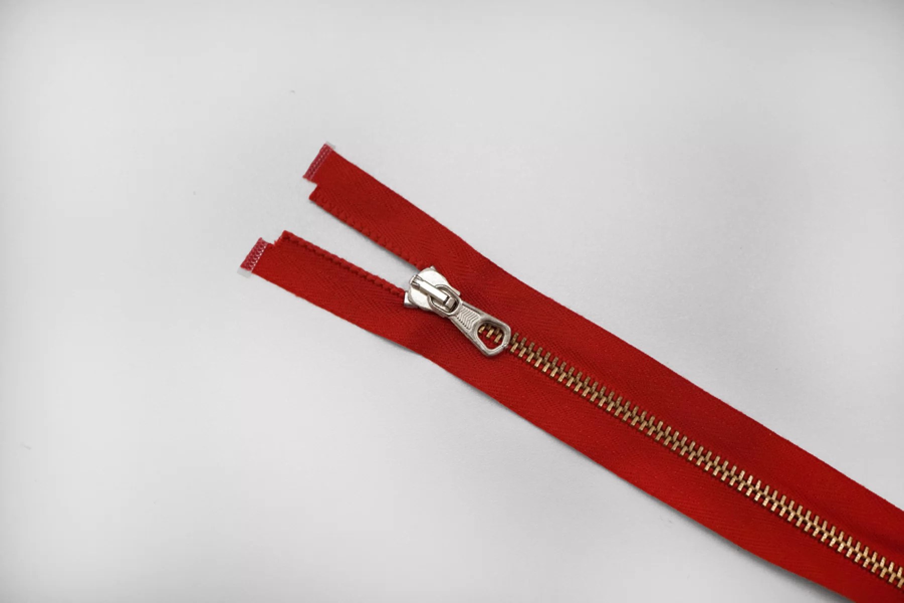 Молния металлическая однозамковая от "Lampo" разъёмная, красного цвета, пуллер и слайдера серебристый. Длина 53,5 см.